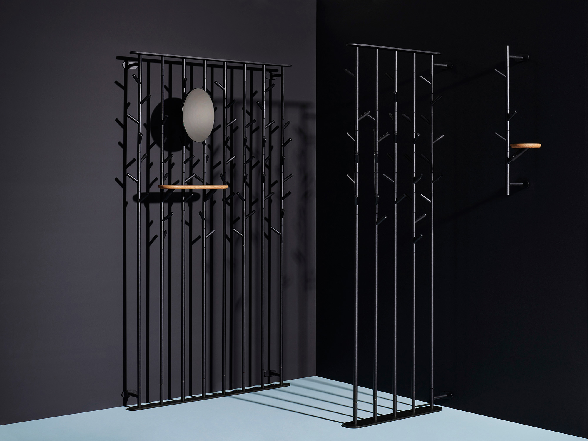 Italian designer Luca Nichetto created the Sumi series of coat hangers. Inspired by nature, they feature branch-like supports with a black, powder-coated finish. The series is conveniently modular and comes with accessories like mirrors and shelves that attach to the coat stands. The Sumi design comes in a wall-mounted version and a round, freestanding option. Also made for the entryway, Sebastian Herkner’s Mask is a multi-functional coat hanger with an integrated hanging rail and hooks. This design also comes with an optional drawer or a shelf. Sebastian Herkner also designed a limited-edition version of the best-selling Grace bar cart. Elegant and practical at the same time, the 1950s-style Grace Salon Edition design now features a deep red finish and a Rosso Lepanto marble top.