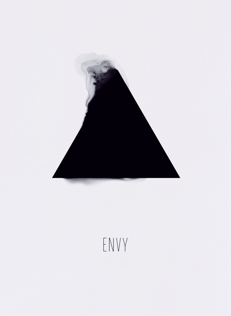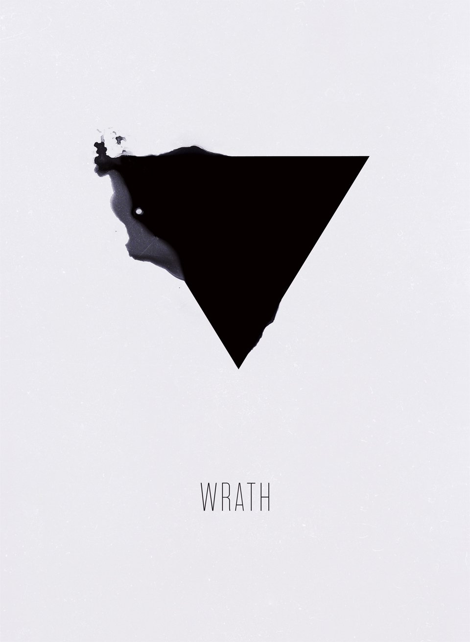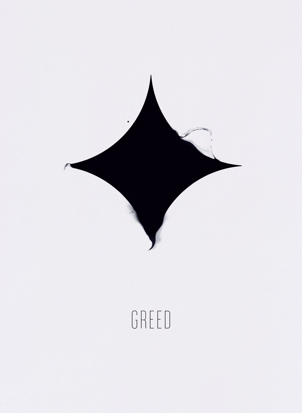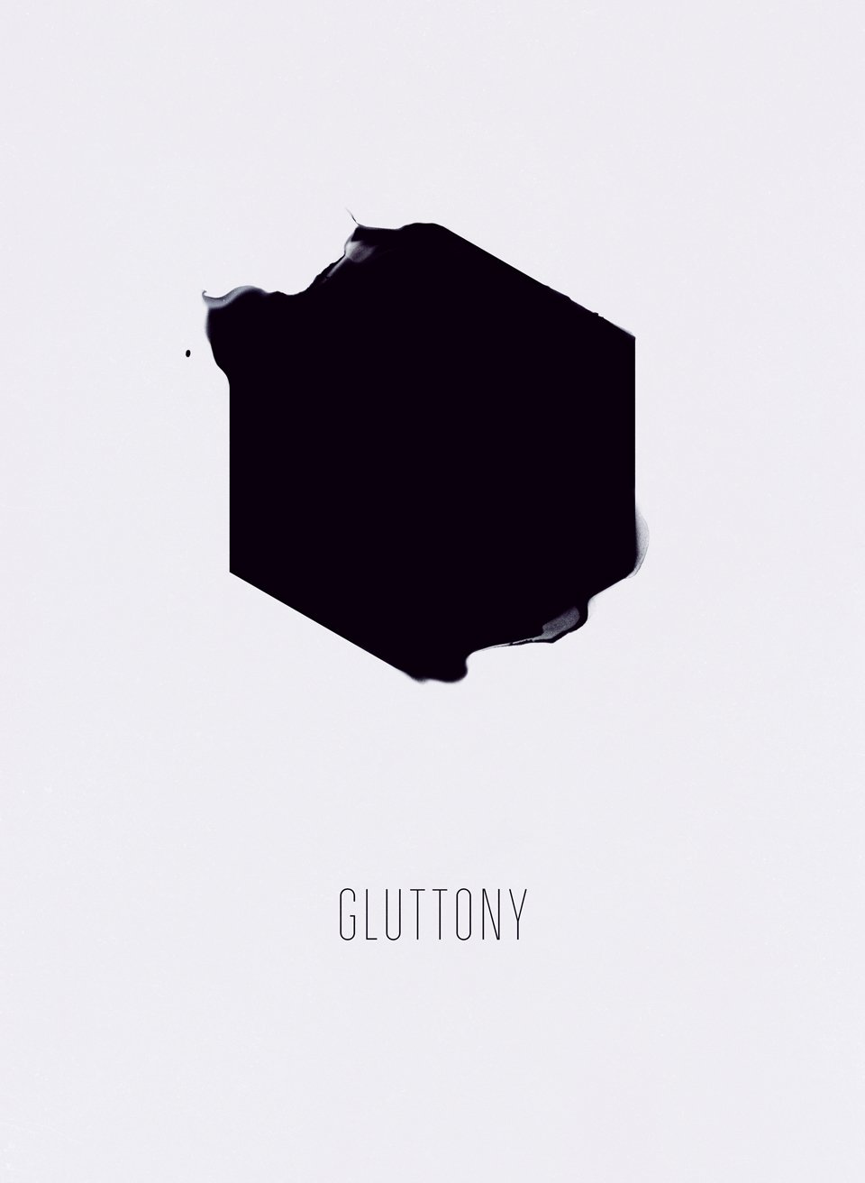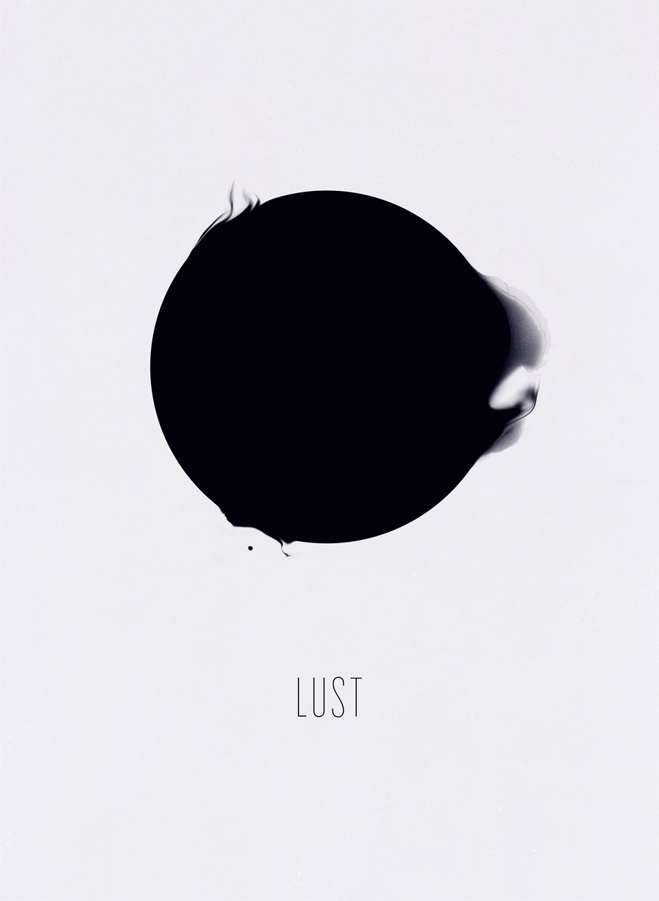 Alexey Malina has portrayed the Seven Deadly Sins in a series of posters called Seven Sins. The black shapes bleed as the deception and dread of sin’s course evolves in one’s life. Their stamina caves to lust, wrath, envy, greed, sloth, pride and gluttony. As the New Testament warns us, “flee from evil, cling to what is good” for the patterns that follow the seven only lead to death.