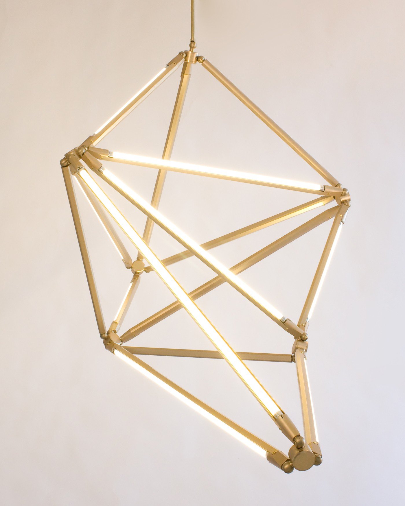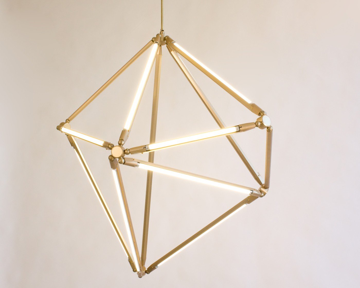 Modularity has made a splash on the canvas of design; recent architectural works and furniture leverage the personalization to allow the general public to customize a spatial experience. One of the most crucial characters of a space is the lighting, and New York designer Bec Brittain has found a way to translate this customizability to the field of lighting design. SHY Light, for American brand Matter, is a step toward this direction, and the light offers a variety of configurations through its triangulated network of LED tubes. Regardless of whether the living room needs a new sconce light, or a perhaps an extra ceiling fixture, SHY Light is able to fit the bill. The bright LED lights sit upon a black metal frame, and the visual contrast elevates the light in its sophistication. Still, the mobility of the joints of the SHY Light evokes memories of children’s toys such as the Hoberman sphere and the K’Nex construction toy system. A closer look at the structure and hub connections between bars reveals a detailed design that enables movement while preserving a necessary level of stability for the light to hold a desired shape.