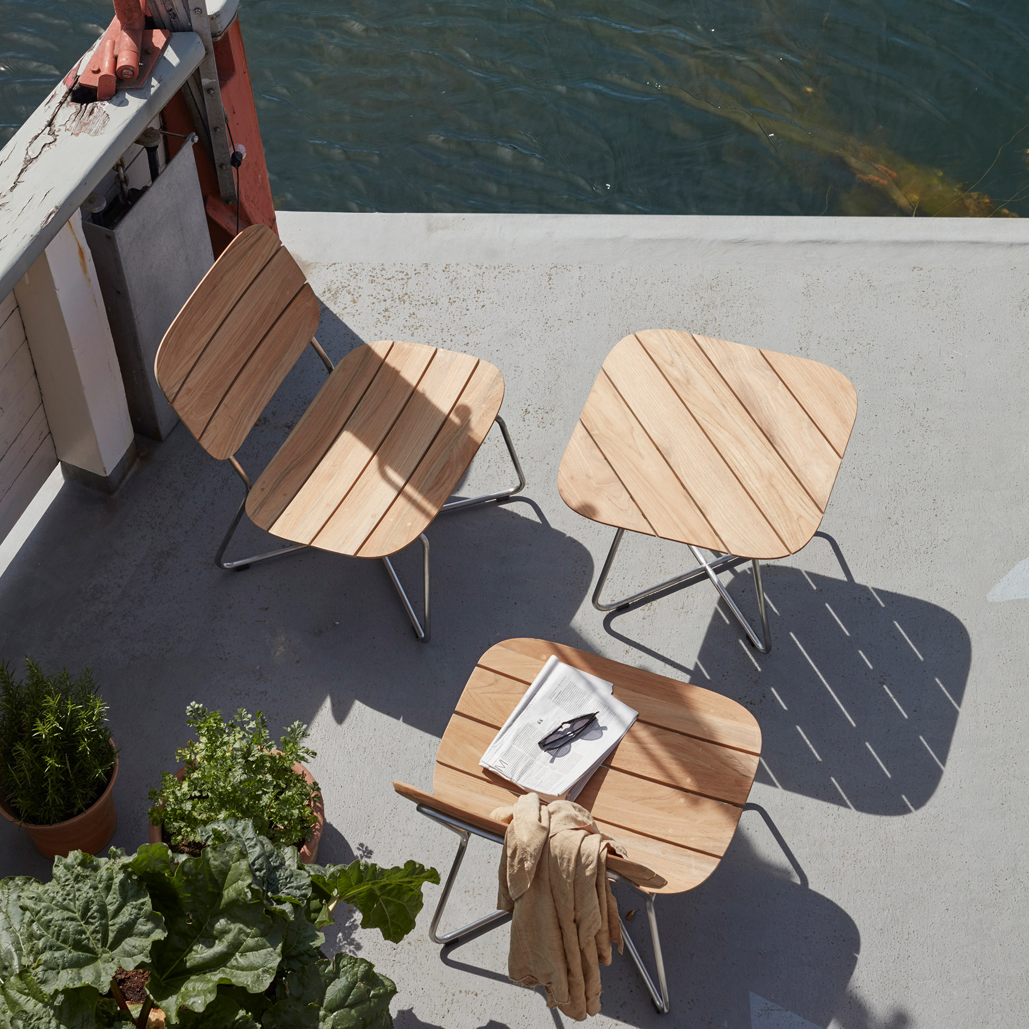 This teak outdoor furniture collection also includes cushion options. Naturally, they suit outdoor use. They feature an outdoor-friendly, Oeko Tex-certified neoprene textile that is water and dirt-repellent as well as mildew-resistant and colorfast. Available for the bench, chair, and lounge chair, the cushions come in Ash, White, Marine, and Charcoal colors. Discover the entire Skagerak Lilium teak outdoor furniture range in the Gessato Design Shop. Photographs© Skagerak.