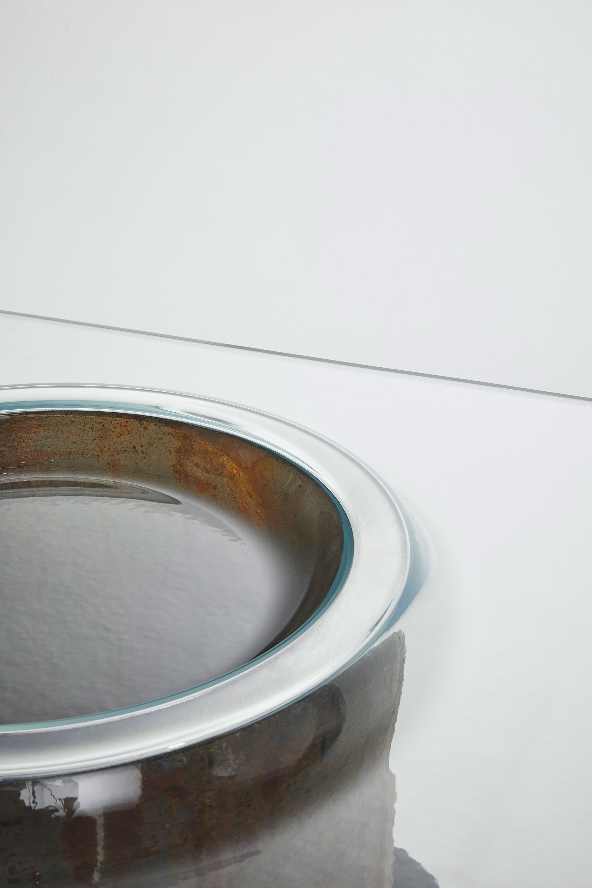 “The pieces themselves are a simple visual gesture, but the process behind them was complex. The challenge was how to transform something that has been made flat and rework it, while avoiding putting ‘stress’ back into the glass.”