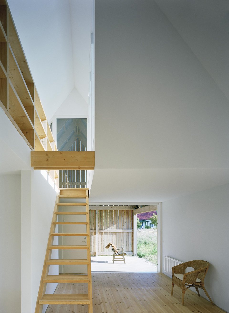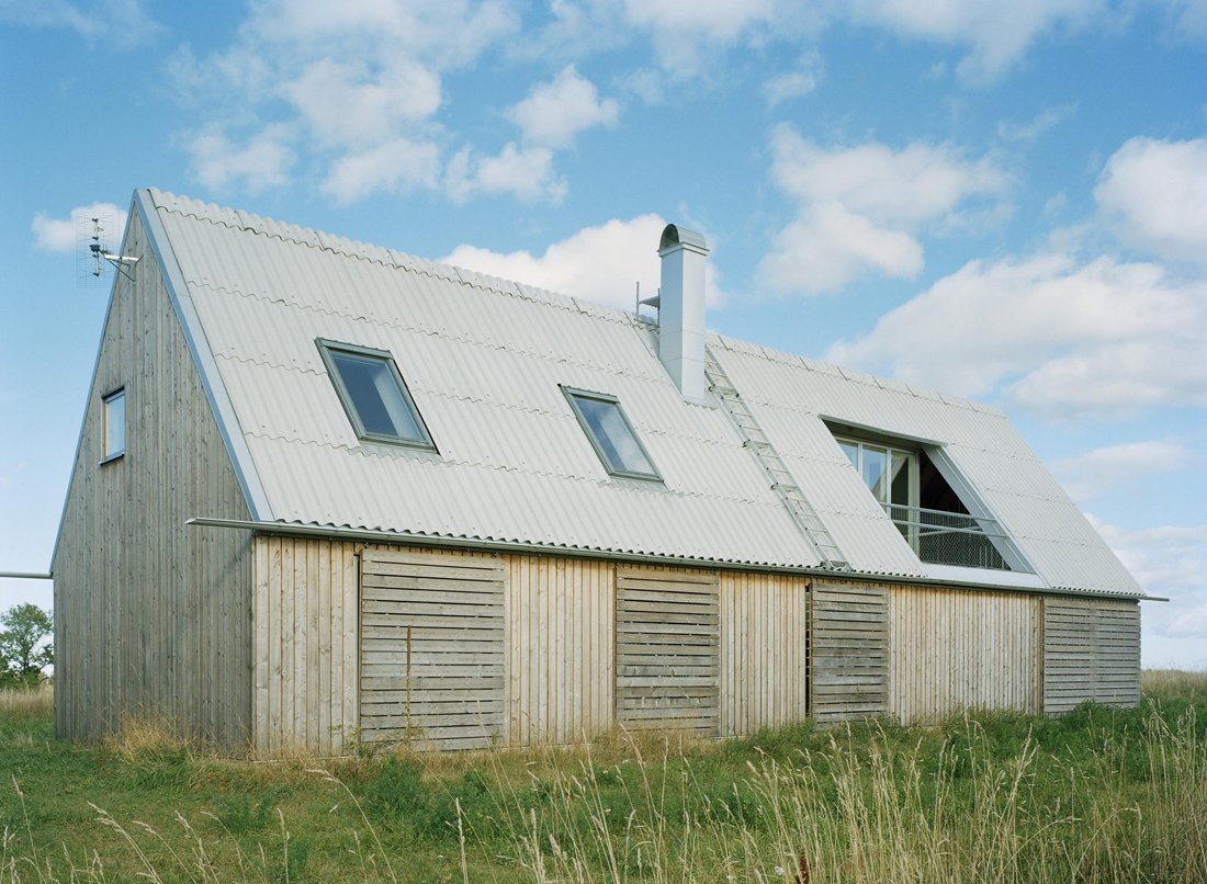 In the beauty of Fårö, Sweden architects LLP Arkitektkontor designed a treasure to match the surrounding landmarks. Sommarhus (or summerhouse) at Stora Gasmora holds fast in a neutral facade on an open field situated between the glamorous Baltic Sea and an amazing 15th century neighboring mansion. Structural style wraps up in common objects assumed for the likes of a farm including larch and the gabled roof of fiber cement boards. Generous sized sliding doors continue this barn-ish feel with a wide isle platform exposing the open roofing above. An easy access to the main living extended to this covered porch by passage of tremendous glass doors. Throughout a delicate balance between rustic and contemporary straddle the fence in perfect arrangement. Mimicking the line up of skylights, a curious balcony peeks out from the rooftop offering views of the sea; also chic woodwork leaves built ins, staircases, and floors almost raw.