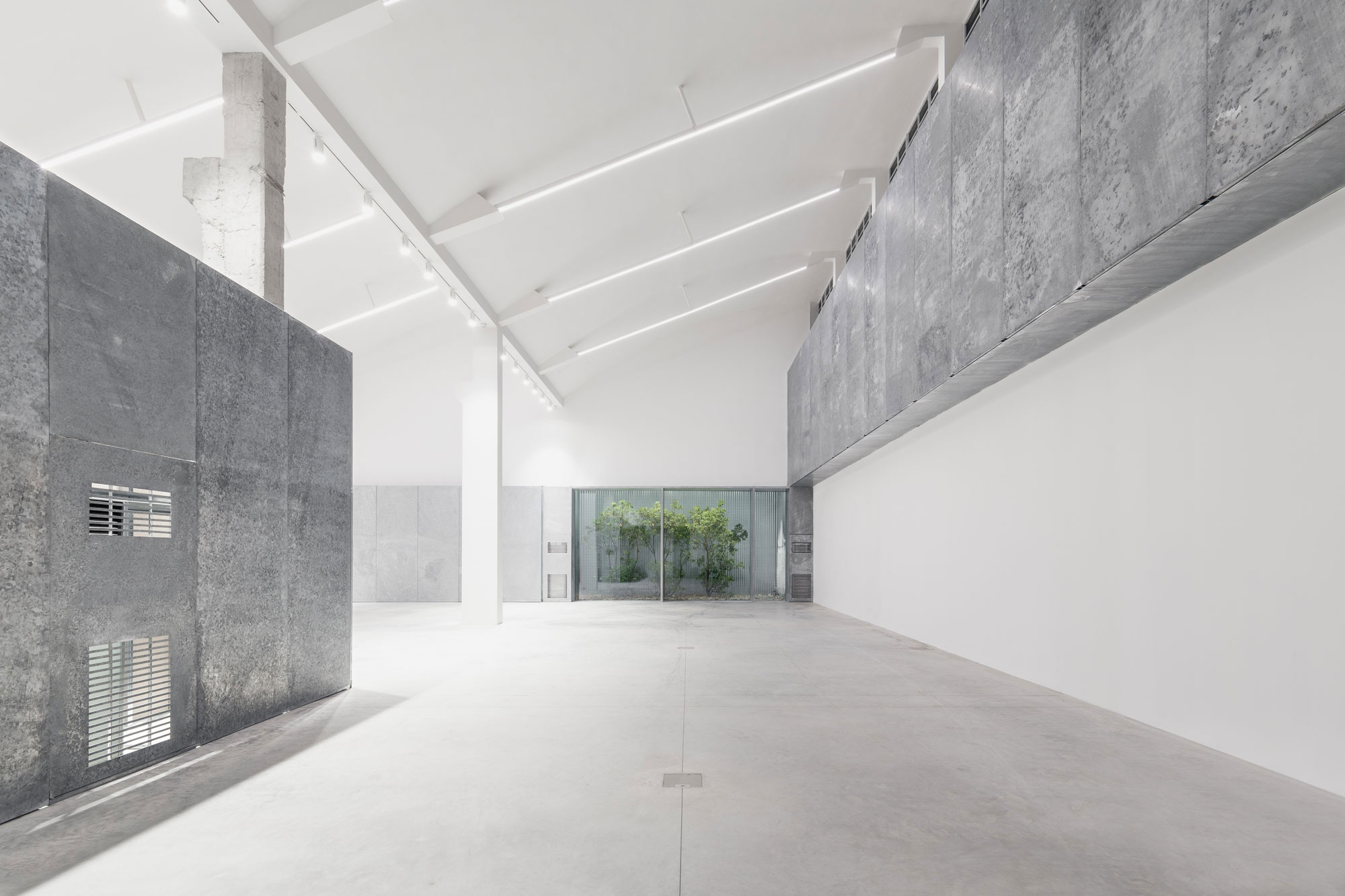 White walls, huge rooms and high ceilings give Spazio Maiocchi a monumental presence. A large courtyard also provides a great way to exhibit artworks and sculptures. Elsewhere, an interior garden with trees offers an organic counterpoint to the curated range of displayed works. An abundance of lighting that ranges from pendant lights to strip LED lights that traverse the ceilings illuminate the exhibition and event areas.