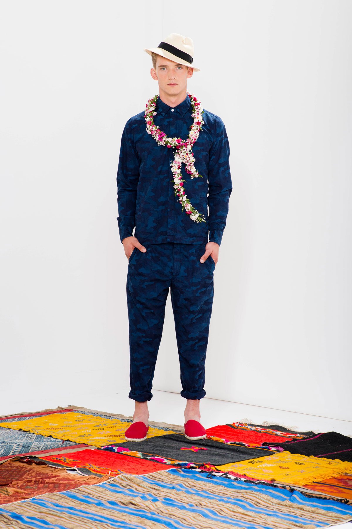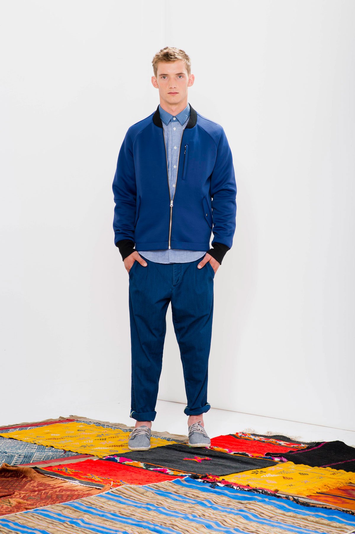 The Amsterdam-based clothing brand Delikatessen just announced their SS15 collection, Fava. Loosely inspired by fava beans, the menswear is bright and wholesome with a mix of relaxed and fitted silhouettes. Blue and navy predominate, accented by brown, green, grey and red threads and layers. The pieces include jackets, t-shirts, sweatshirts, each made from a wide variety of fabrics, ranging from French linen to Italian summer wool and Japanese ramie.
