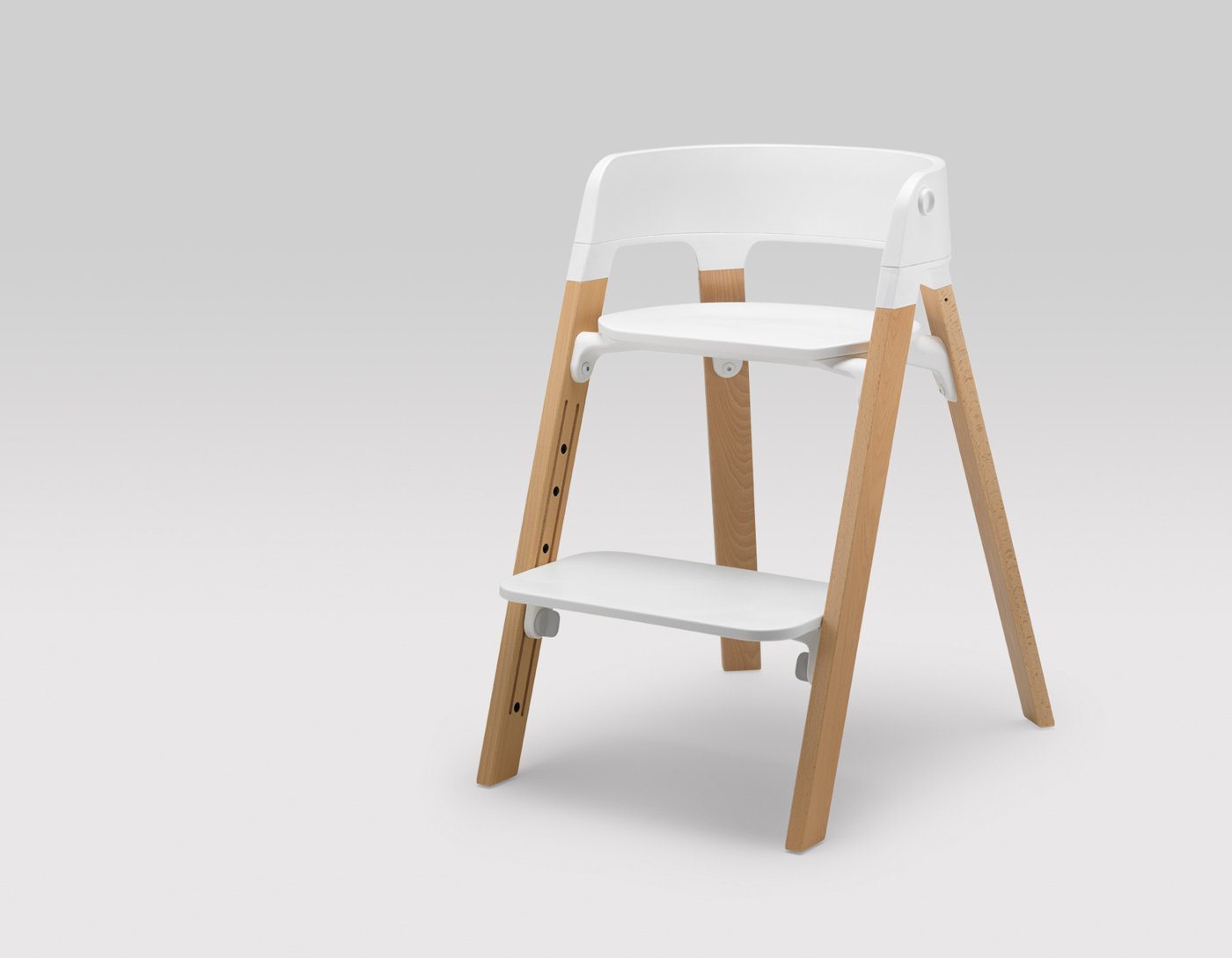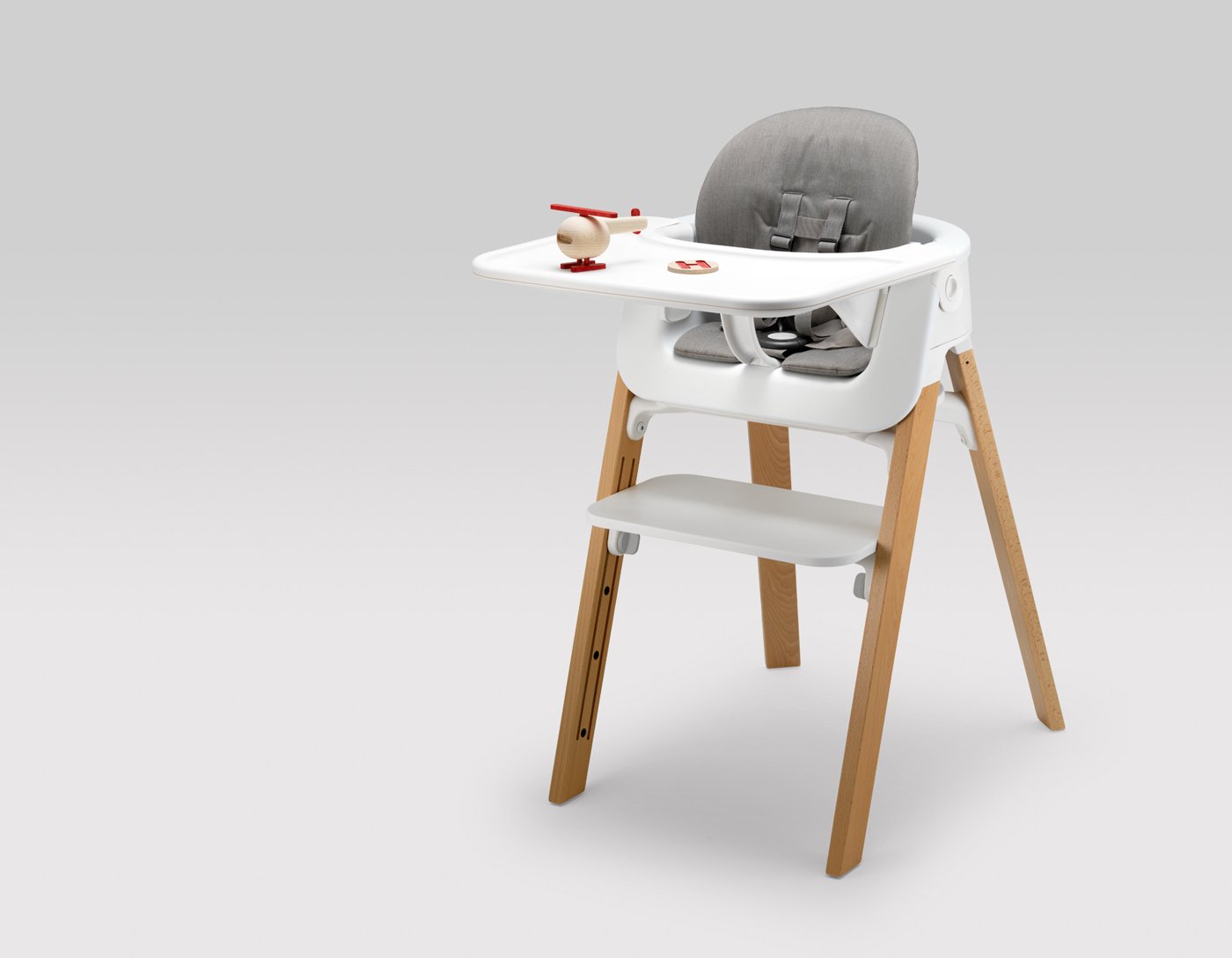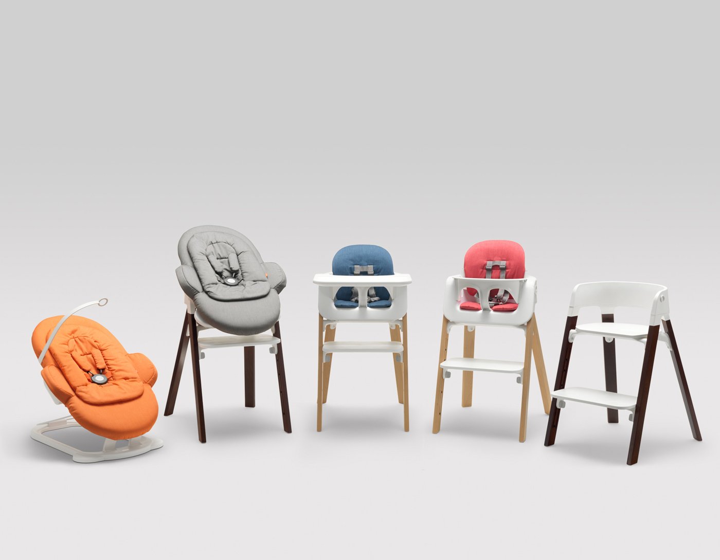 Based in Norway, Permafrost Designs likes a challenge. They have created a range of different products, from spirits bottles to soccer goals, and their latest work turns to yet another area: baby furniture. Made for baby supply store Stokke, Permafrost’s seating system changes form, so that the same chair can support a child from infancy to early youth. The ergonomic design is made up of a washable seat cushion, a plastic seat and tray, and wooden legs with a natural, black, or white finish. The module functions as an infant recliner, a baby bouncer, a toddler’s highchair, and a kid’s chair with adjustable height, simplifying the job of keeping up with a growing child.