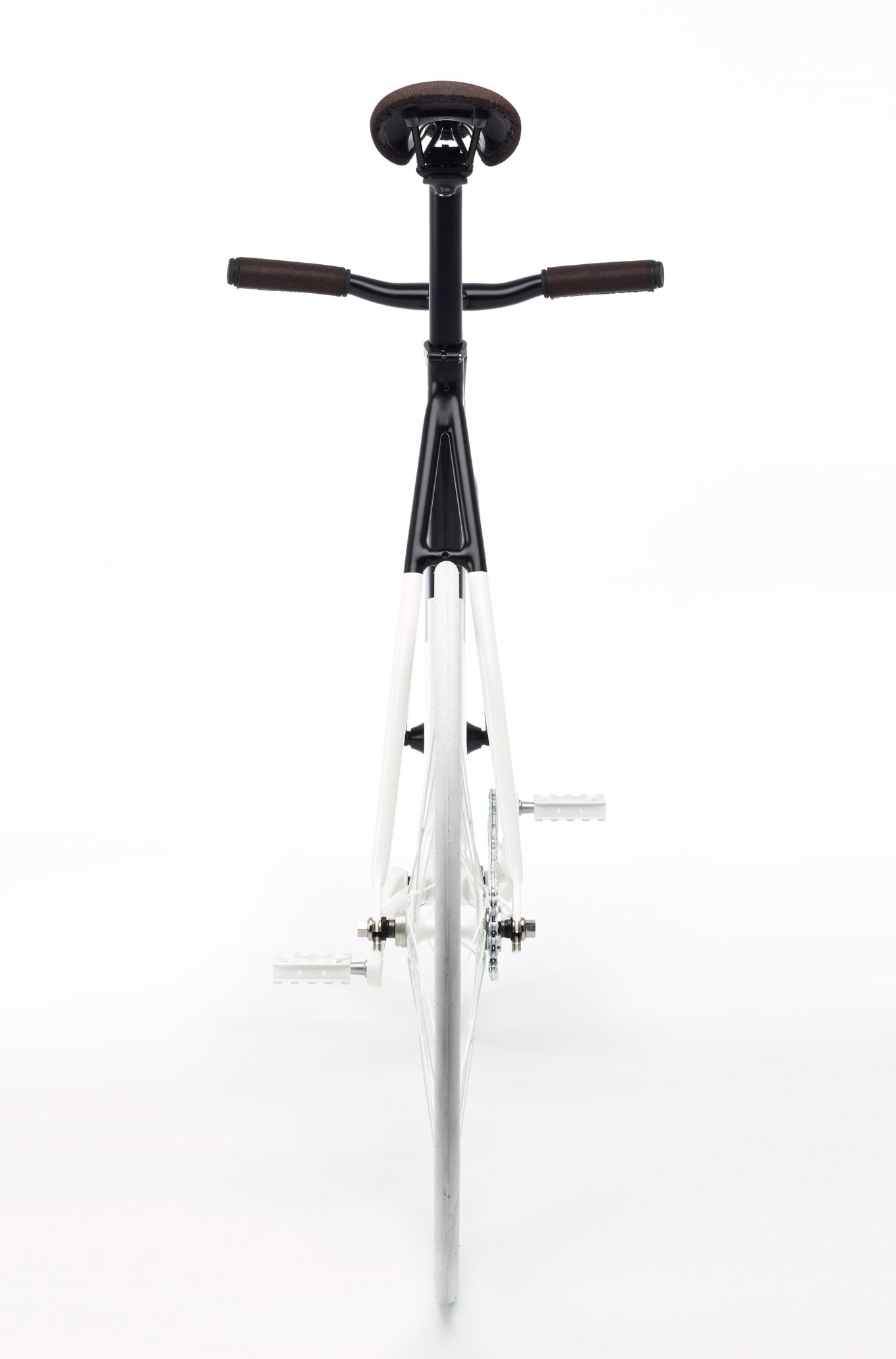 Designed by art director and illustrator eltipo graphic, it looks more like a work of art than a classic fixie. The strong contrast between the tones and finishes creates a distinctive design which makes the bike look like it’s been dipped in white paint. Featuring matte black and gleaming white surfaces, the fixie also comes with distinctive laser engraved leather seat and grips. Brightness and darkness, clean lines and modern design combine in what may be the only bicycle in the world that would look better on a wall than on the street. Photography by Greg Smolders.