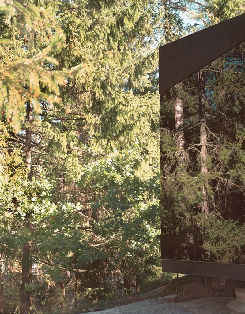 Designed with mirror walls, these four cabins perfectly reflect the surrounding woodl...
