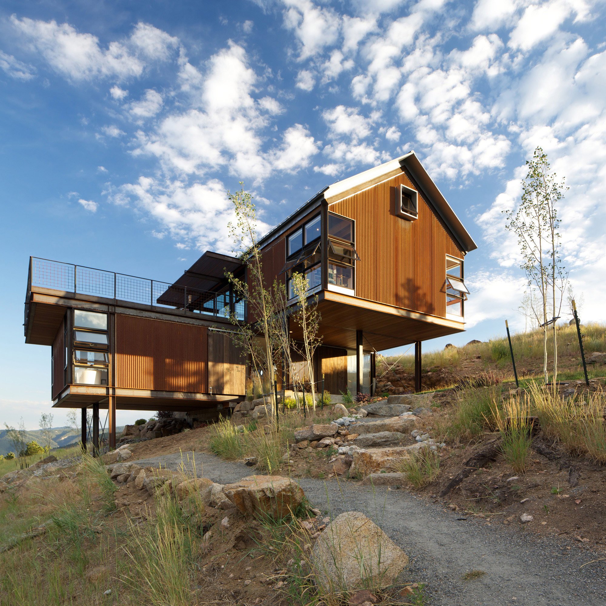 Back in 2010, a fierce fire known as the ‘Four Mile Canyon’ fire destroyed the dense pine and fir forests covering this hill in Boulder, Colorado, along with 169 homes. The recently purchased house and plot of land belonging to architect Renée del Gaudio and her husband were also damaged extensively, requiring a complete redesign and rebuild process.