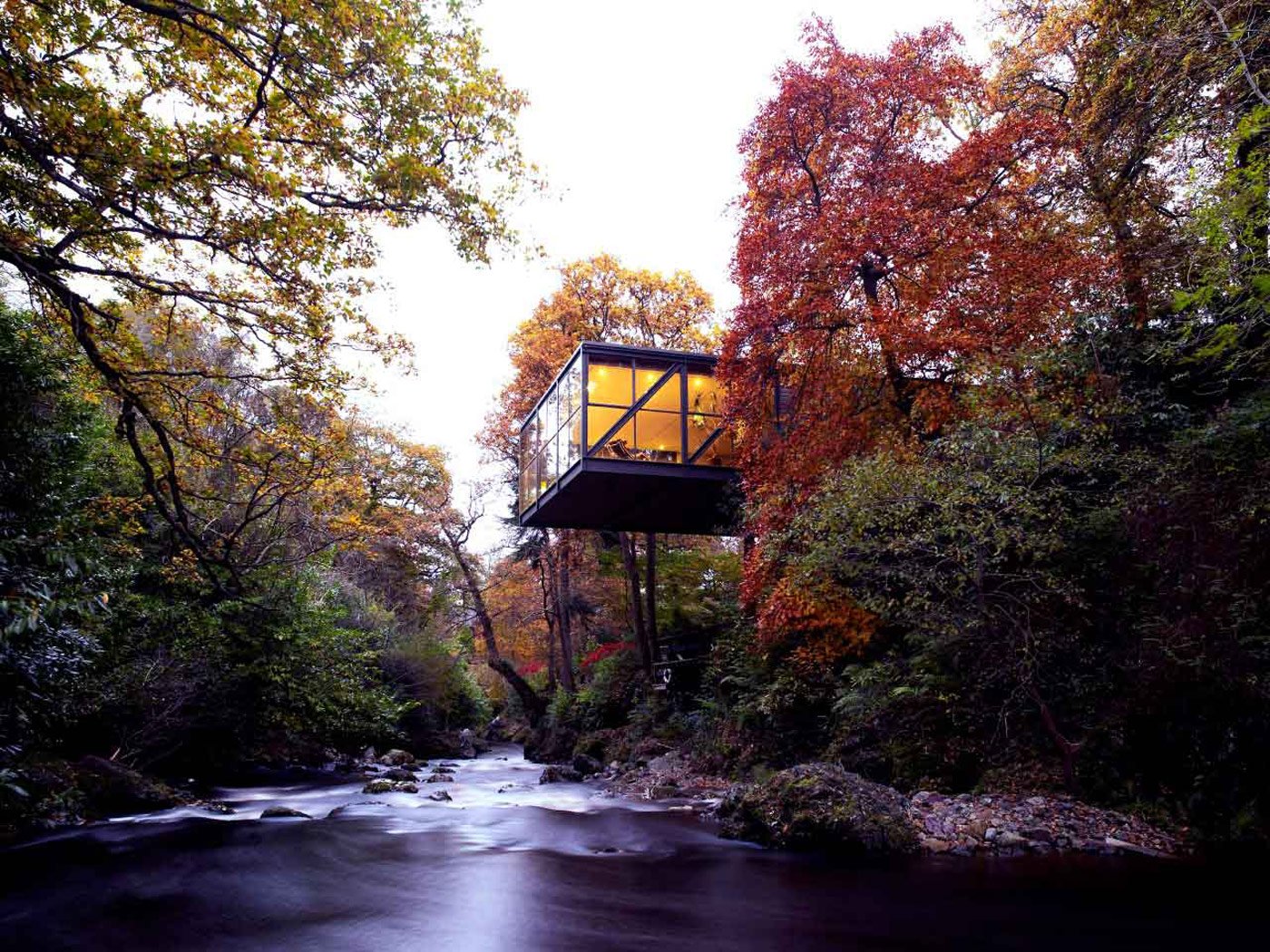 Designed with mirror walls, these four cabins perfectly reflect the surrounding woodl...