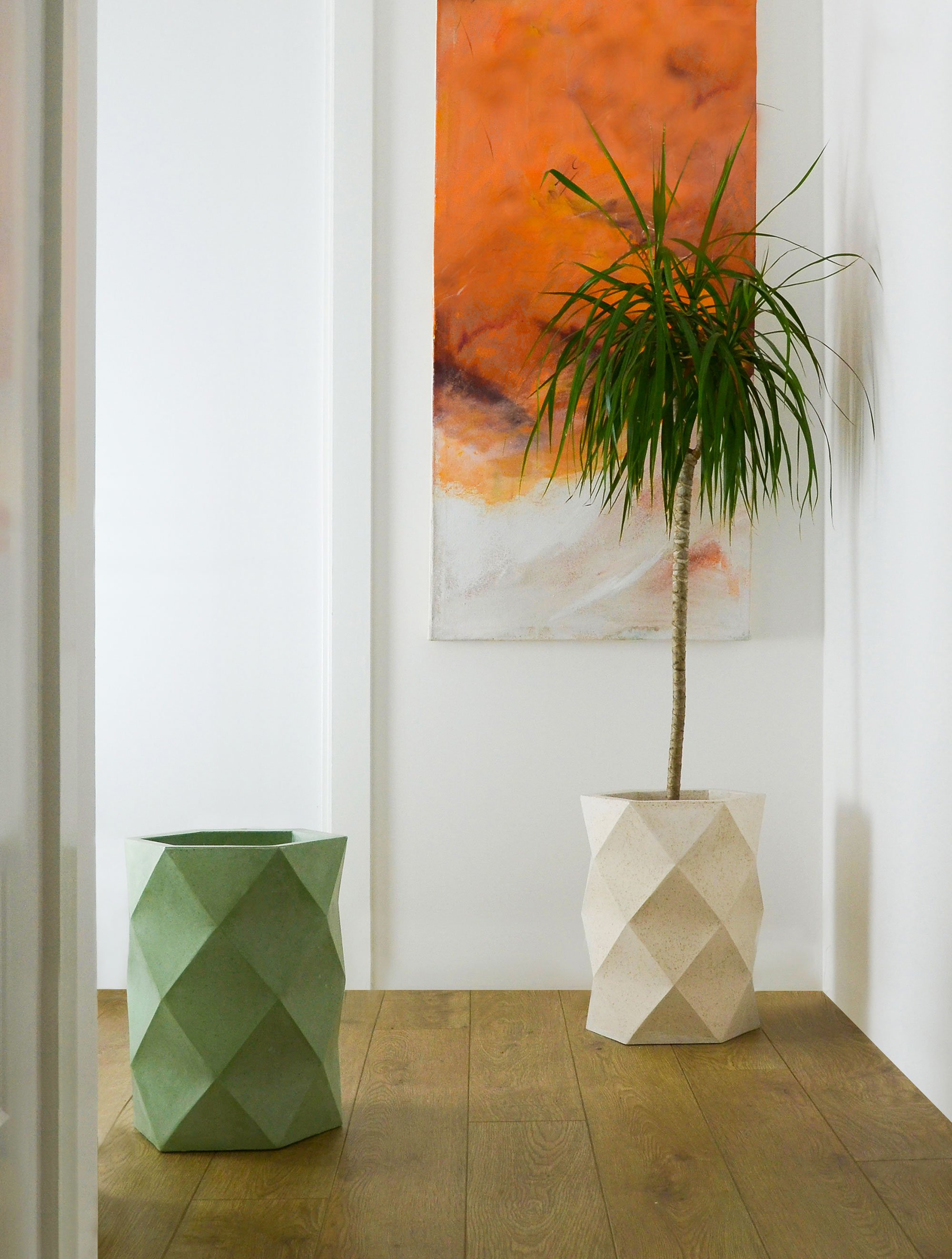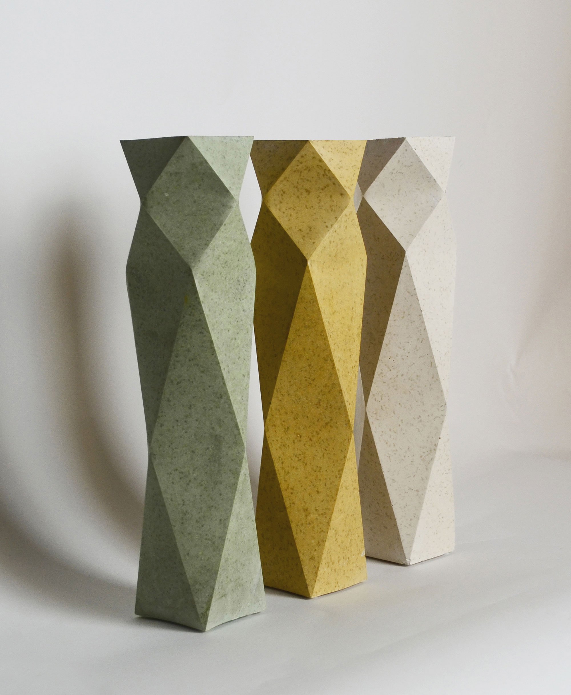 Developed and designed by their own studio, Dust London, this collection of homeware is sculptural and organic. To create the elegant objects, the designers developed a special process that involves creating molds using a sheet of paper and traditional origami techniques. The process includes folding the paper, balancing the tension between facets, and reinforcing the material before creating silicone molds. The designers then select the tea waste from used tea bags and mix it with a non-toxic binder.