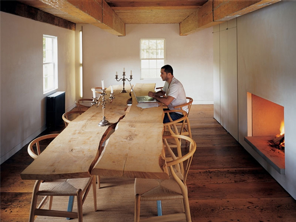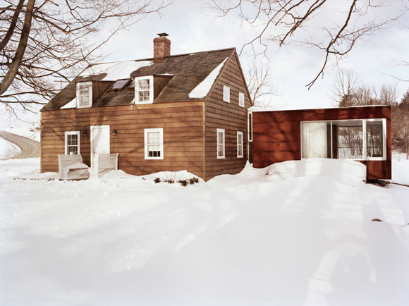 The Ten Broeck Cottage is located in an apple orchard in Columbia, New York. What makes this traditional house unique is its impressive history. The first written record of the house dates back to 1734, but the cottage has gone through countless renovations over the years, maintaining only the silhouette, a small section of the wide board pine floors, and a wall in the basement from the original structure. The owners hired the Messana O’Rorke architecture studio to bring the interior to modern standards and to design a large extension for extra accommodation.