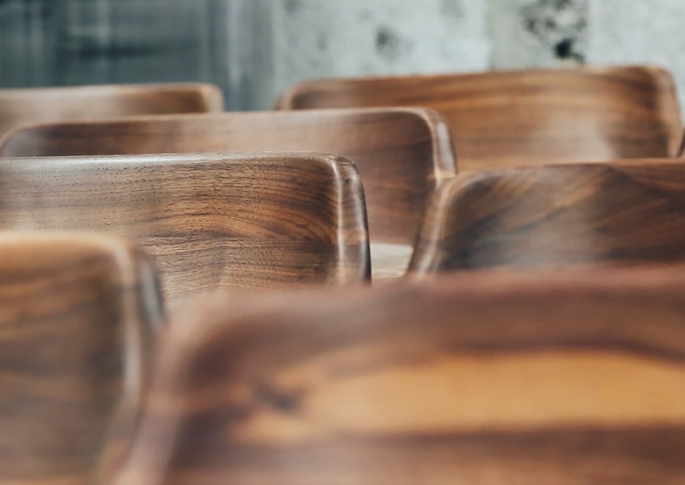 Mexican Artist Luis Luna of Namuh Studio presents this subtle yet stunning functional piece. Handmade in Durango, Mexico by Namuh Studio, the elegant curvilinear form is reminiscent of classic Eames bent plywood chairs, a return to universal design through fluid connections and impeccable craftsmanship. Aron’s walnut construction lends itself well to the gentle, intelligent hands of the artists who shape its sweeping contours with an unparalleled understanding of material and make. A short, curved back provides unobtrusive support while graceful legs weightlessly raise the seat to a comfortable height. Each Aron chair is built with incredible attention to detail and unshakable dedication to good design from beginning to end; Namuh’s charming work embodies a certain character that goes unmatched by the redundancy of the industrial process.
