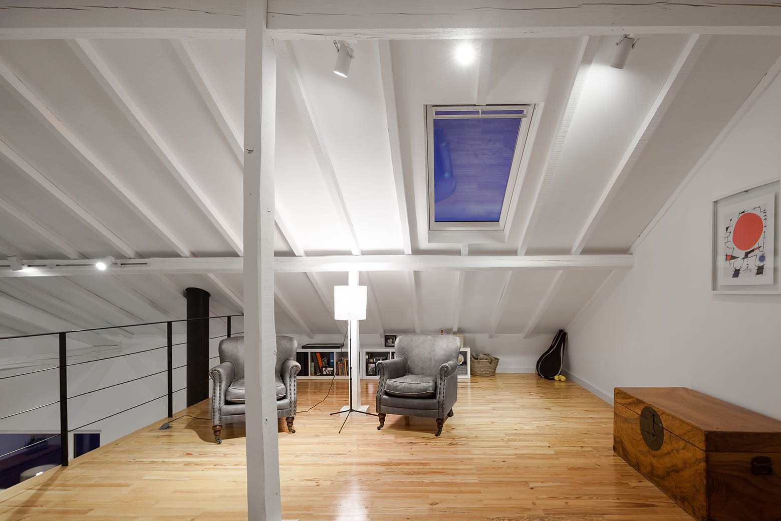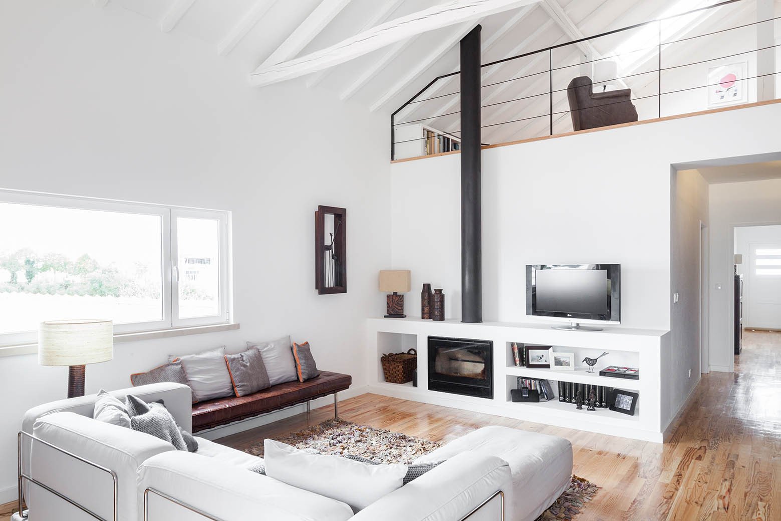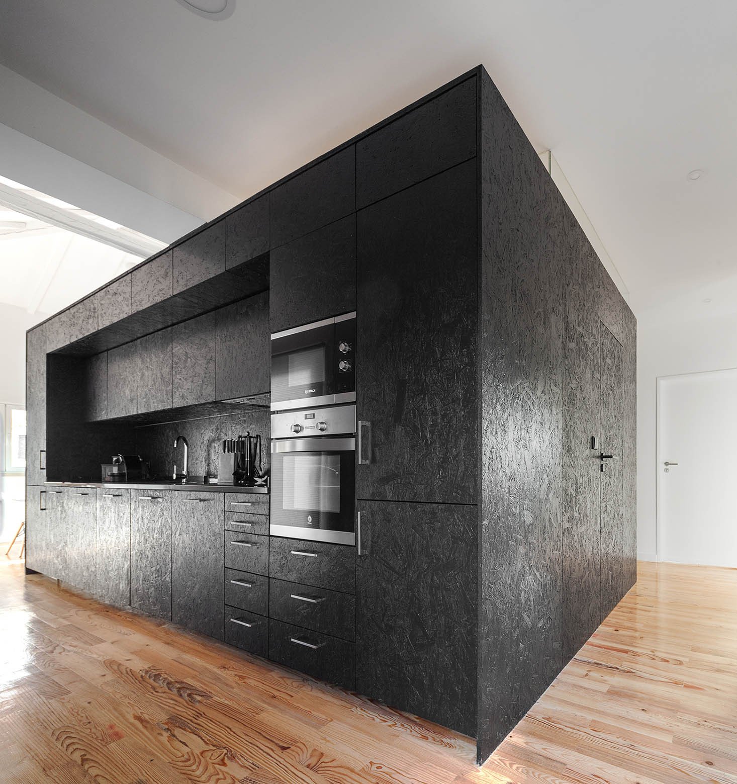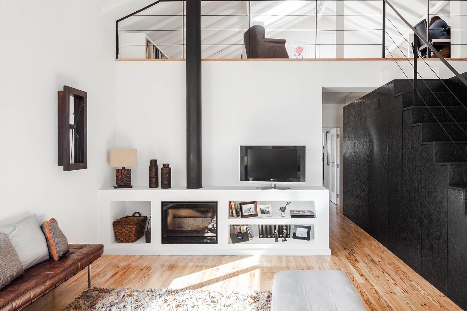 For her renovation of a 50-year-old barn in the town of Monte Real in Portugal, architect Ines Brandao looked to treat the existing building as not just a vernacular context, but as the protagonist of its own story. In her effort to “maintain existing memories from a space that, once, was the stage to such varied experiences,” Brandao put most of her efforts towards revitalizing what was already there, save for a singular major intervention to set the stage for the new story its future residents would unfold for themselves. The barn is set up with a lovely double-height living room on its ground floor and an upper loft area housing a more secluded perched study, two locations that invite you to share stories and discussions with your friends and loved ones. The renovation of these spaces is admirable, as they pop with bright furniture that deftly compartmentalizes the open space of the barn into manageable social areas. But connecting these spaces is a new bridge of Brandao’s own design; a rectilinear monolith finished in a matte black that stands in stark contrast to the teeming whiteness of the barn surrounding it. This new addition serves practical functions, housing the needed essentials of a house such as the kitchen, toilets, storage and a staircase with which to access the upper floor study. Working on a tight budget, a move such as this really shows the best kind of ingenuity an architect can bring to a project, as it meets the programmatic requirements without occupying too much of the desirable space of the building. There’s almost a futuristic tinge to the monolith, as from within its seemingly simple shape emerge an array of hidden doors, cabinets and shelves from which all the needs of a standard kitchen are met. In its darkness it brings a new light into the space, as it leads you under the loft to the more private and serene bedrooms of the back of the house. It also serves an important narrative need, as it so abruptly interrupts the nostalgic aura of its surroundings to remind you that you are living in the here and now, and that the stories you recall are never as good as the ones you live. It’s a bold statement to make within what otherwise may seem to be a standard renovation, and proves that the protagonist of this Barn House still has a lot of adventures ahead of her. Photography © Joao Morgado