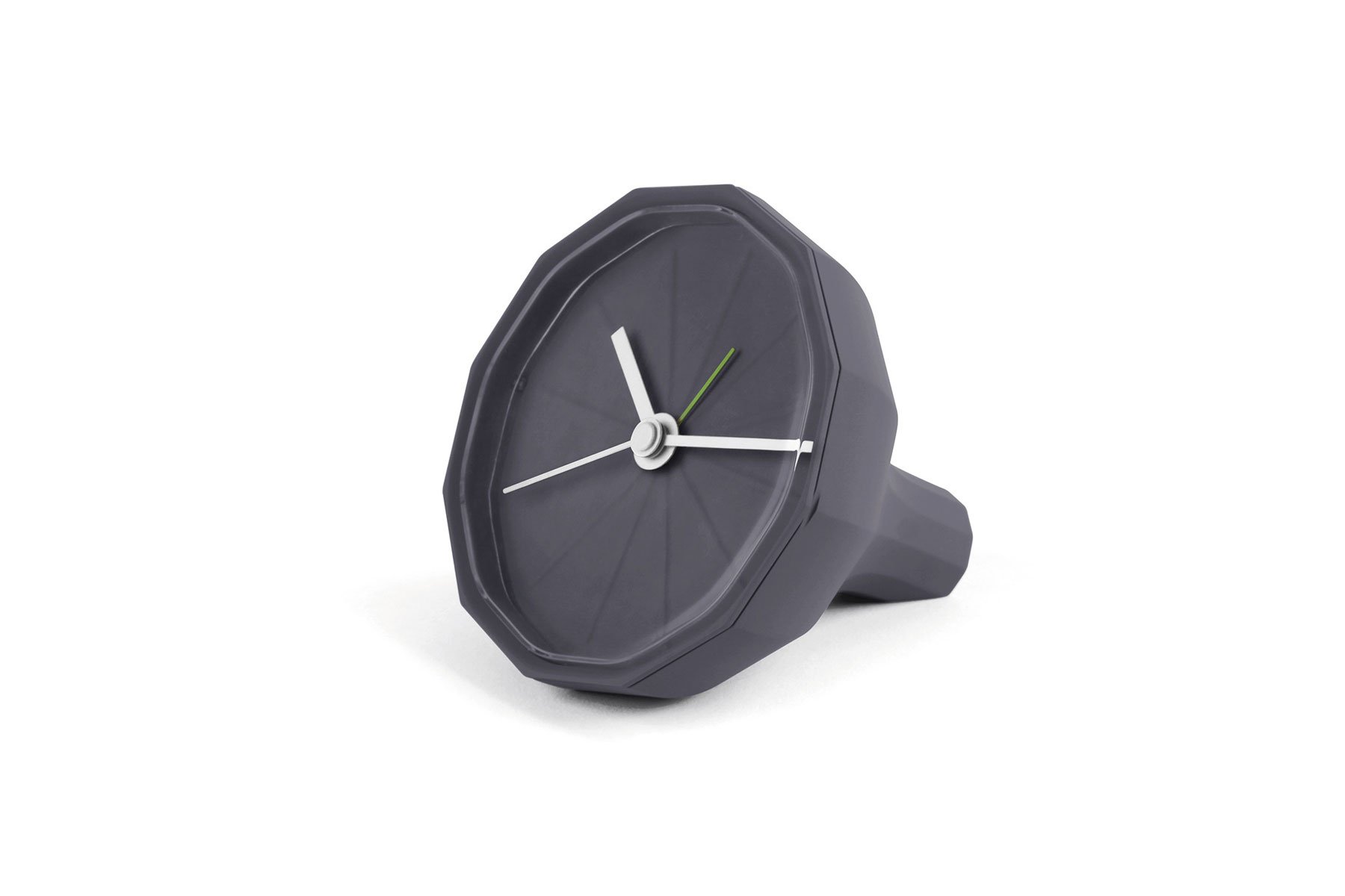 The Babylon Clock is inspired by geometric rock formations, with raised facets giving texture to the round, modern design. Raised lines on the clock face indicate the hours, while luminescent hands make it easy to read the time. Modern features include an LED backlight, Snooze button, and sweeping second-hand movement. Attractive from all sides, this small clock makes an excellent desk clock or bedside alarm.