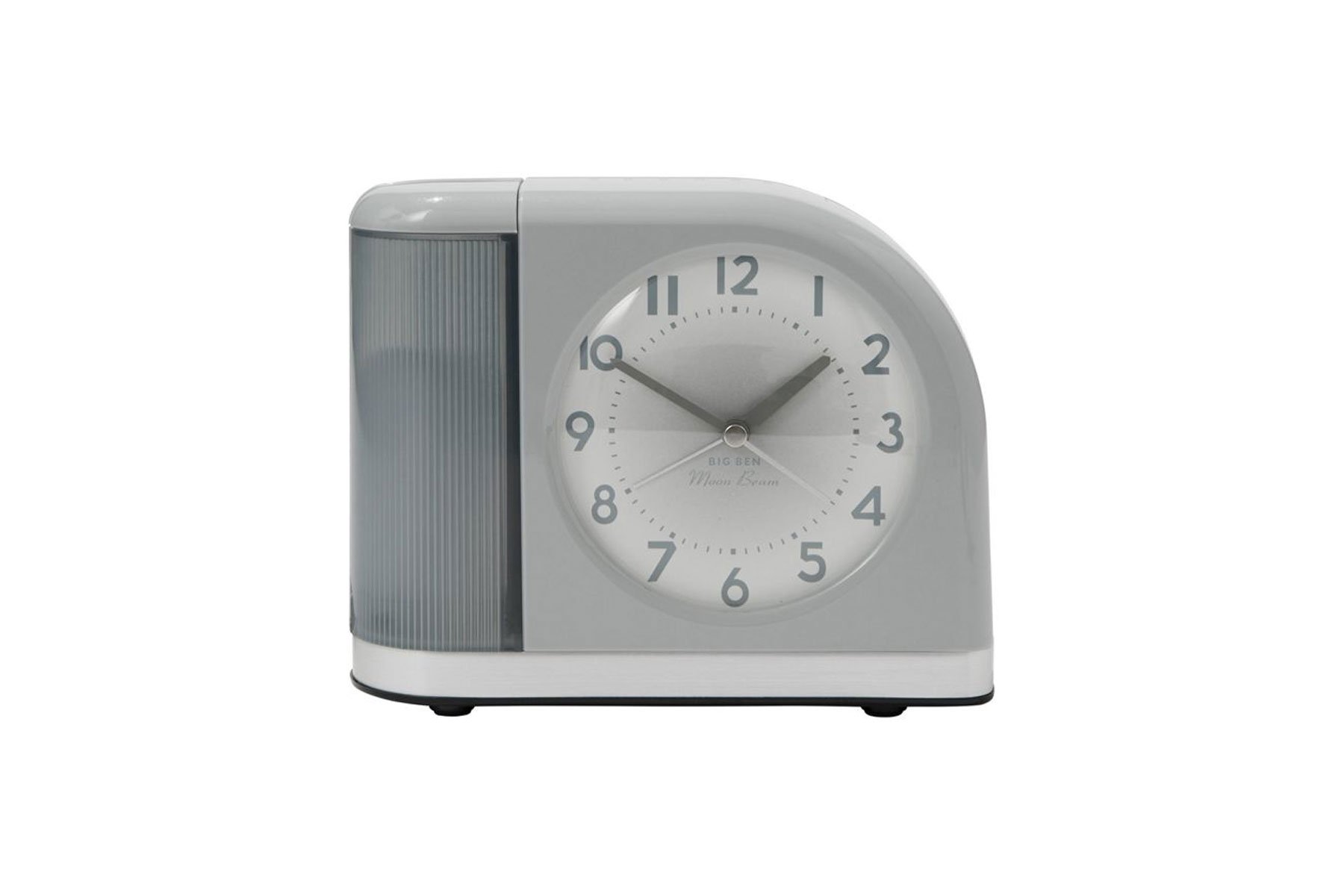 Small but projecting a mighty presence, this round clock features large, elegant numerals and minute markers. Distinctive black hour and minute hands complement a ticking second hand. The classic face design is encased in a vintage-inspired aluminum body. This unique alarm clock’s chunky shape will make a statement in any room.