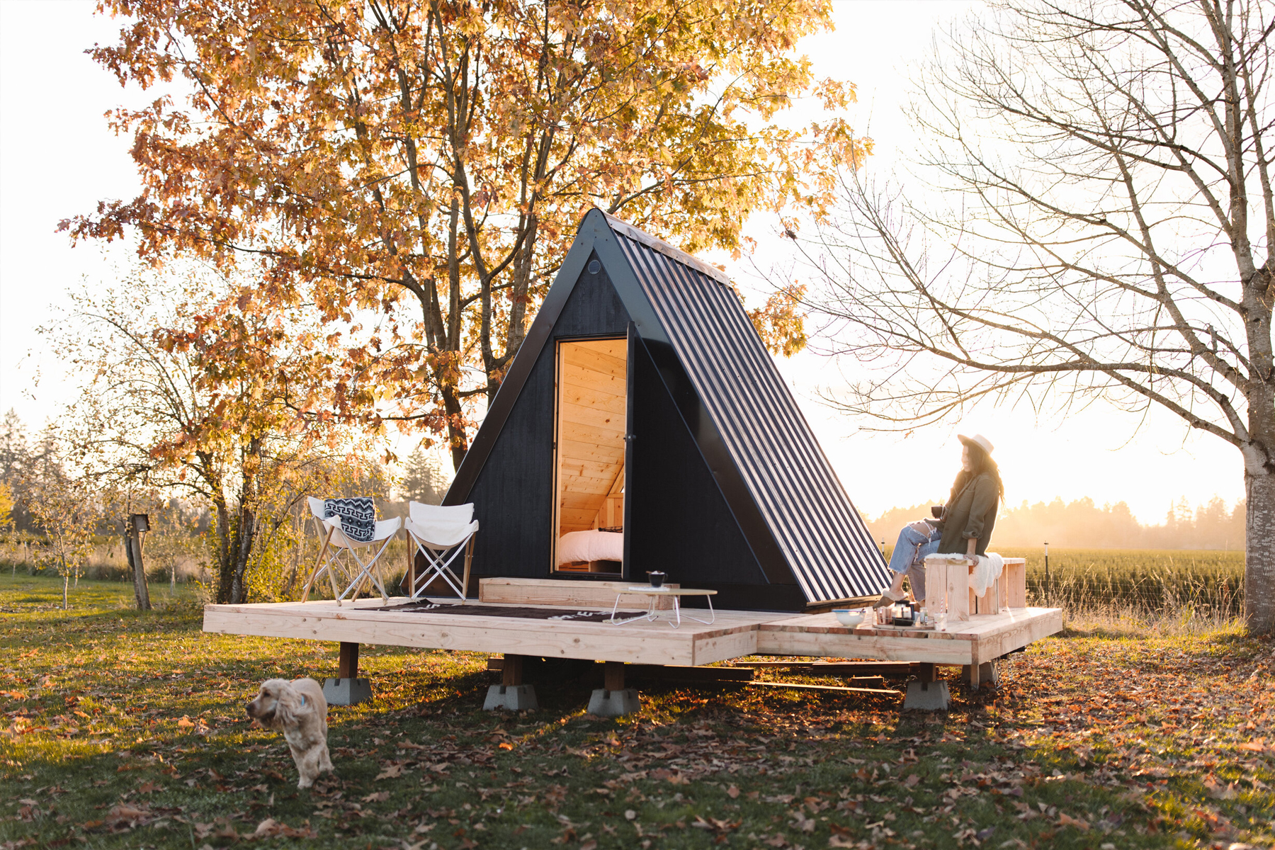 Founded by a team of creatives who love design as much as they love the outdoors, Bivvi is a Portland-based company that makes prefab cabins with a simple A-frame design. Compact but cozy, the cabins feature cedar siding, a metal roof, and a triangular window. Customers can choose the interior finishes, the best electrical package for their needs, and whether they prefer a trailer-friendly mobile design or a permanent cabin. The Bivvi prefab cabins suits various uses, from a retreat in nature to an office space in the garden.