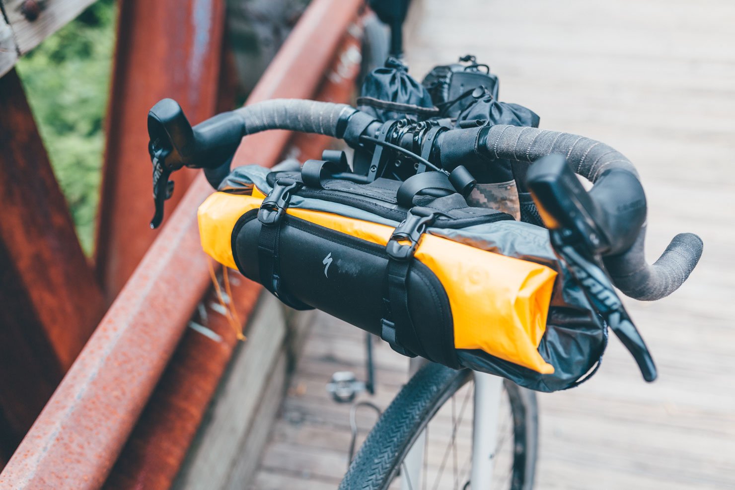 The Burra Burra line includes several designs that are meant to cover all the basics on the road. The Handlebar Stabilizer Harness attaches to the handlebars via aluminum brackets and even though it is designed for drop-bars, it will work just as well alongside a straight bar setup. The harness is made of rugged materials and has four main straps and two bar-stitched daisy chains; it’s ideal for lighter gear, including a tent or a sleeping bag. Made specifically for the harness, the Drypack is spacious enough for larger gear, especially the 23L version; it also features a convenient external pocket for easy access to a phone or keys. The Stabilizer Seatpack attaches to the seatpost via a machined aluminum bracket, has a roll-top enclosure with a snap button, and comes in two versions, of 10 and 20L. Compact yet spacious, the Framepack connects to the frame with a six-point attachment system and has two zippered side pockets for easy access to smaller essentials. Perfect for more valuable items like money and keys, the Toptube Pack has a weather-resistant YKK zipper and comes with a mesh interior pocket, while the Stuffcage and Stuffpack combine to provide additional storage at the fork or down tube. The Pizza Bag has a padded interior that is designed to keep the contents secure during bumpy rides or cold during hot summer days and it attaches to the bike via the Pizza Rack. Head over to the company’s website to check out the comprehensive collection of bikepacking bags so you can pack your gear more efficiently and stylishly for your next adventure. Images courtesy of bikepacking.com