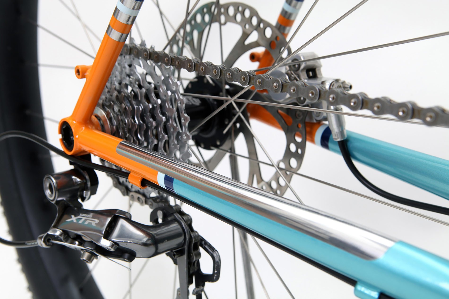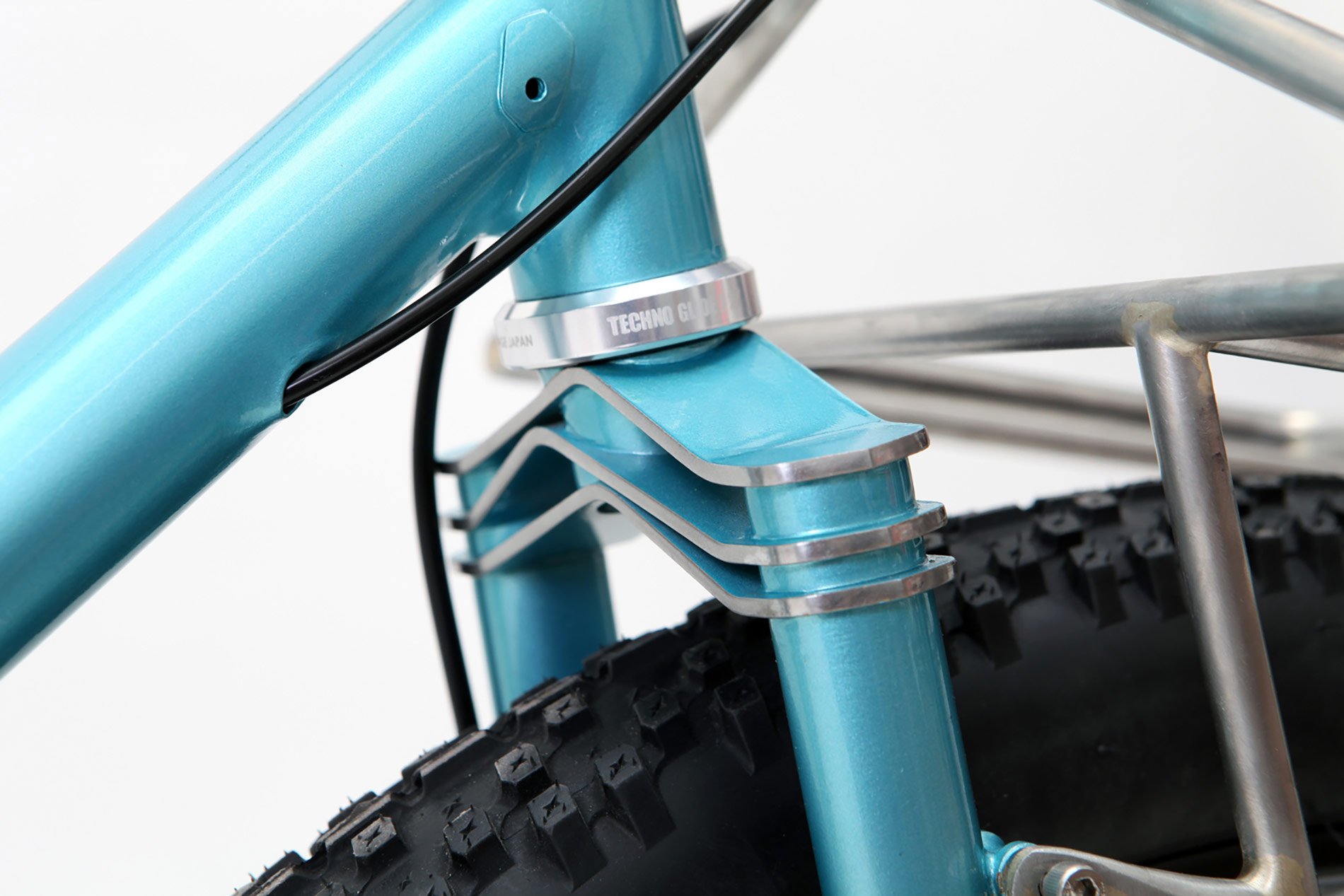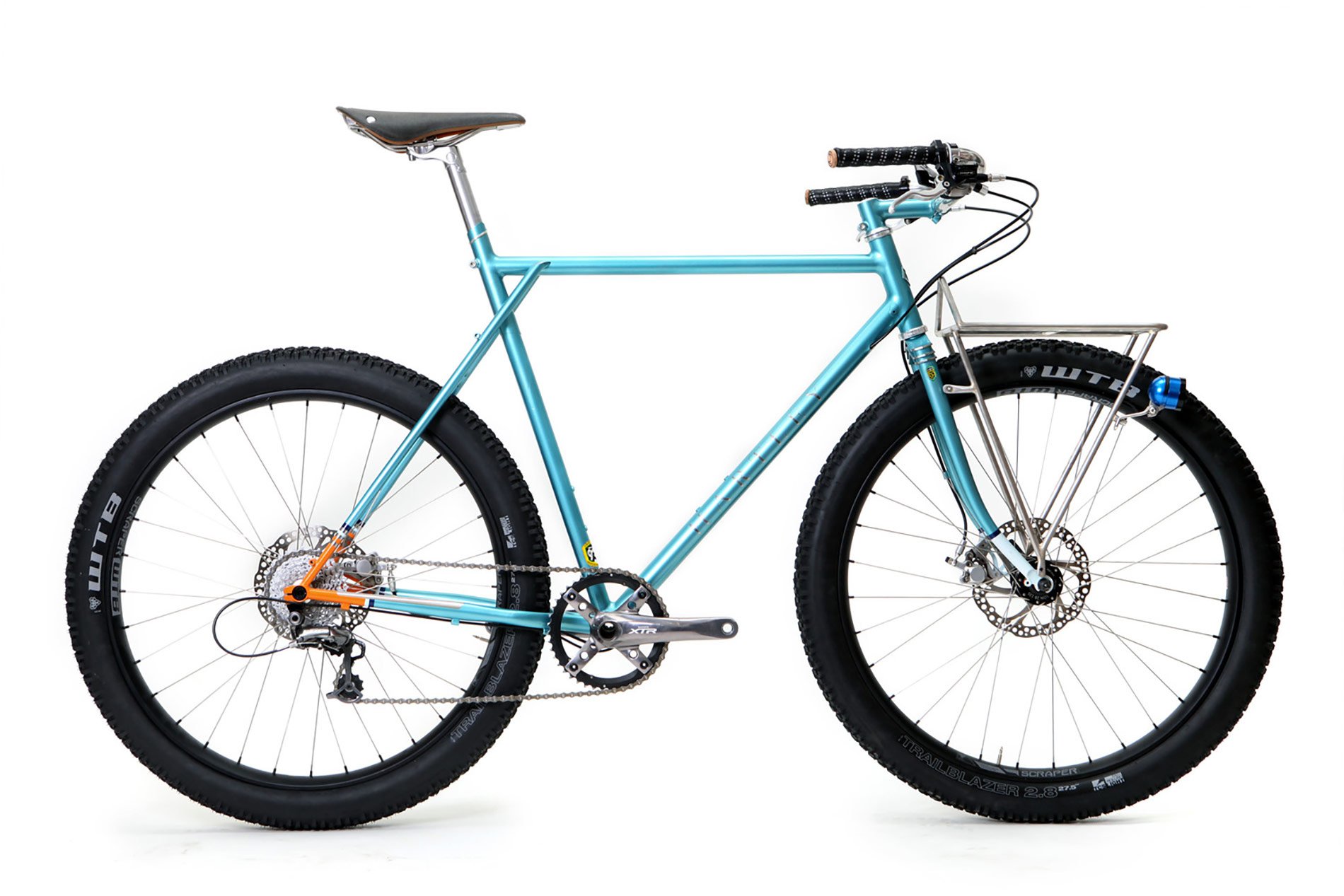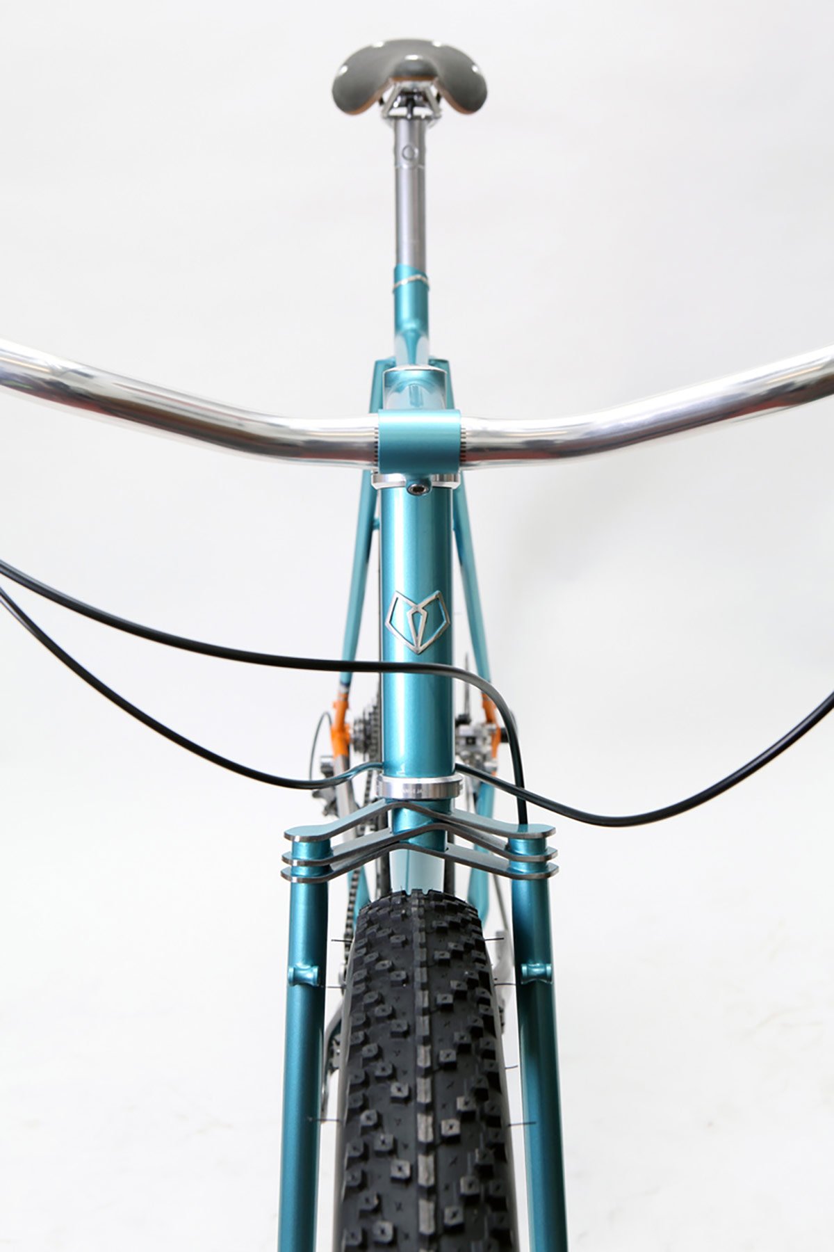 Photographer Camille John Mcmillan has a deep-seated cycling passion – but anyone who’s familiar with the great European Pyrenees will know that most bikes are not well-suited to the mountainous terrain that he calls home. However, the traditional fat bike is bulky, cumbersome, and lacks the elegant simplicity that draws the photographer to his set of wheels. To protect his precious camera equipment on and off the road, Caren Hartley of London-based Hartley Cycles worked with Camille to build a “porky” bicycle “with the lines of a mid century French porteur.” By creating a “triple triangle,” moving the seat stays slightly forward on the strong and corrosion-resistant Reynolds 931 stainless steel tubeset and using a Boost 148×12 through the rear axle, the designer was able to clear wide, smooth-riding WTB semifast tires that would typically be found on a heftier frame. Straight lines and handmade asymmetric details drawn from maps of Camille’s home – like the seat stay bridge and bilaminate seat lug – give The Demi Porkeur its minimal aesthetic. Complete with a Brooks saddle, black leather bar tape, and Son Edelux II Dynamo Lights, the bike’s meticulous handcraft is topped off with simple, high-quality details. Everything is spray painted in house to match (in metallic turquoise, orange, pale and dark blue with a clear top coat), which the maker finishes with solid silver details that are cut by hand. Hartley’s clever adaptation of the two-wheeled archetype just won her the prize for Best Utility bike in Bespoked, The UK Handmade Bicycles Show, which will take place in April of 2016. Via urbancycling