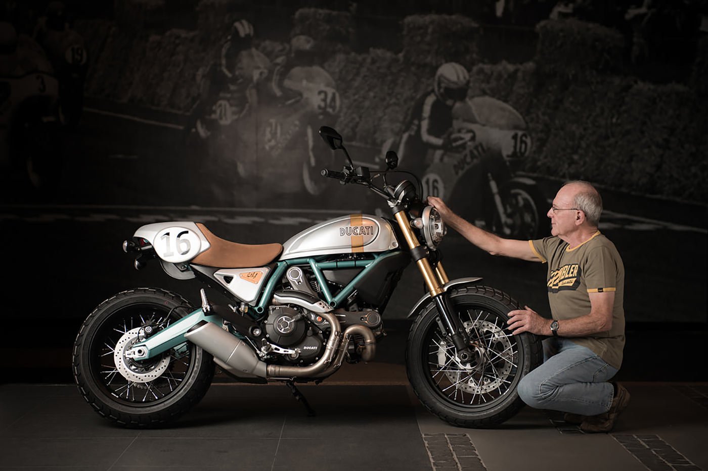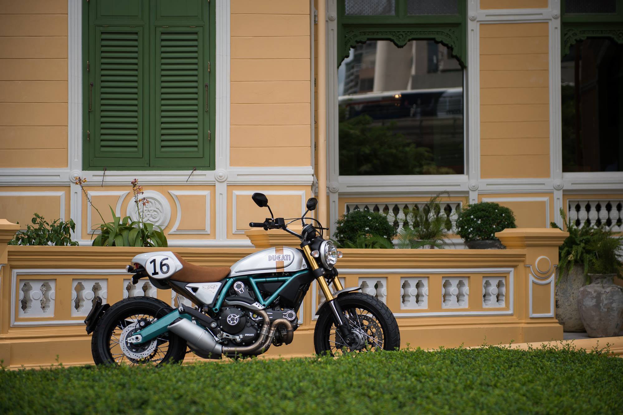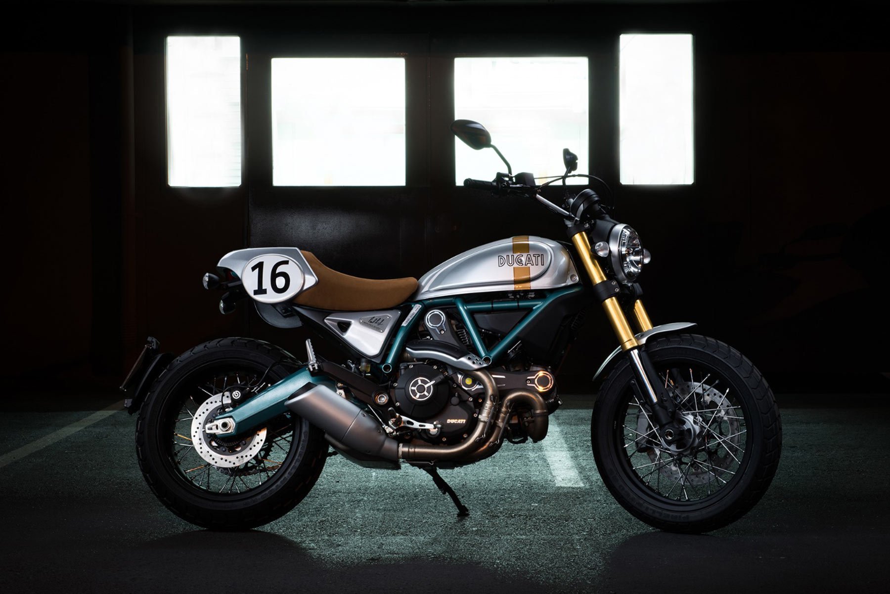 What a difference a bit of paint makes. The Ducati Paul Smart Scrambler would be classified as a “factory” custom bike, and in essence this means that what makes it unique are mainly cosmetic changes. But, unlike many products that would fall under this same category, the Paul Smart Scrambler’s look tells a great story and it does so with true heart. Based on the style of famed racer Paul Smart, whose 1972 Imola 200 race win helped put Ducati’s engines on the map, the bike harkens back to a legacy the company would be nil without. The significance of the Smart/Ducati bond was not lost on Ducati Thailand’s Managing Director Apichat Leenutaphong, who was the driving force behind reviving the iconic theme of Smart’s SportClassic line. Urging Smart and his wife Maggie to help bring this look into the 21st century, the couple spent 11 months traveling in Thailand to help the Ducati team there produce this remarkable bike. The motorcycle revives the silver and Sea Green color scheme of the old bike, with a vintage Ducati logo on the tank and a clever stripe of gold to recall the original racing bike’s translucent fuel level window. The most difficult job though was dealing with the tail section of the bike. The team first modeled it in clay and then 3D scanned it, using computer modeling to integrate it into the new design. The seat’s upholstery is a lush brown Alcantara, and to top it all off the cowl sports Paul Smart’s 16 race number. These bikes were truly a labor of love to bring to life, and unfortunately only 24 units have been made so far. One hopes that Ducati sees the potential in this throwback, and begins a larger scale production soon (hopefully in time for my birthday)