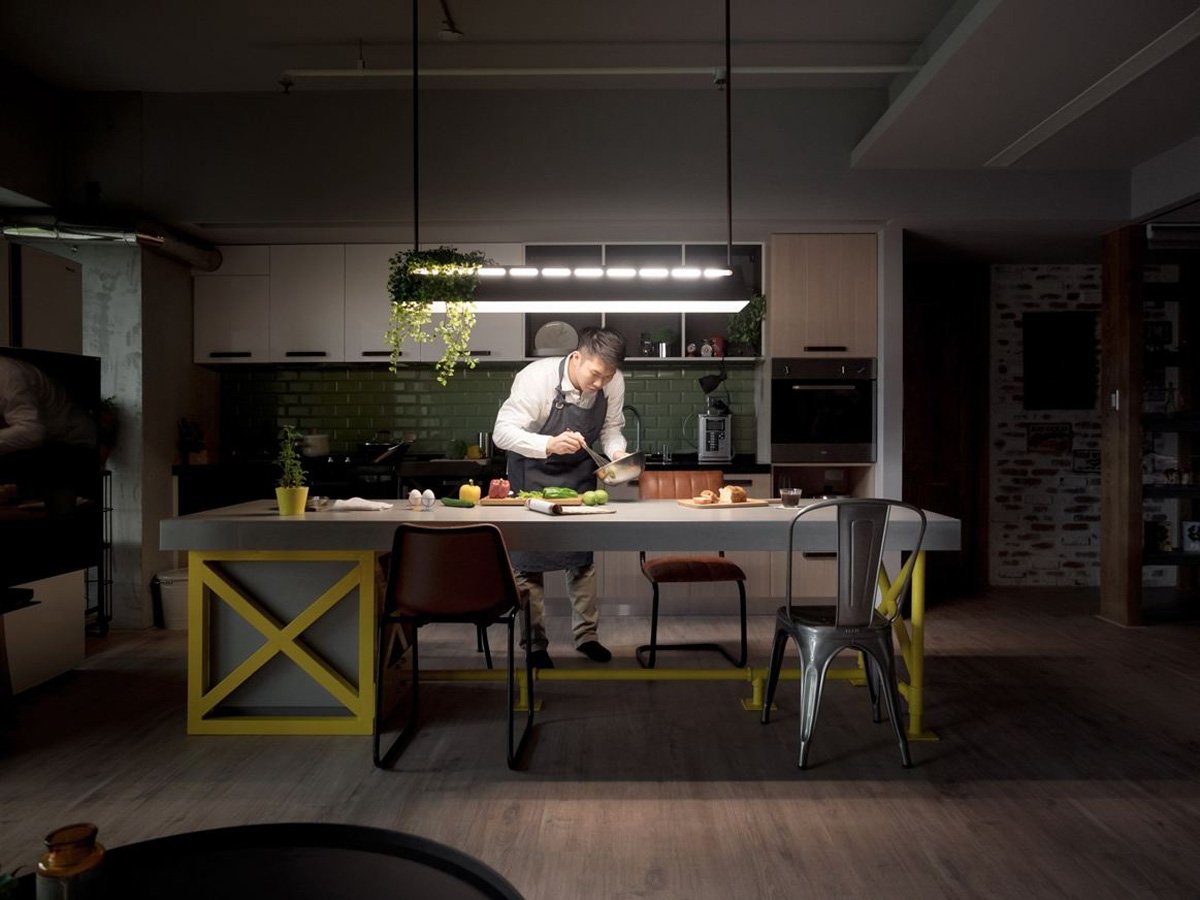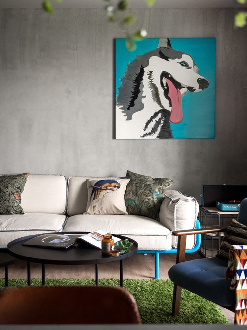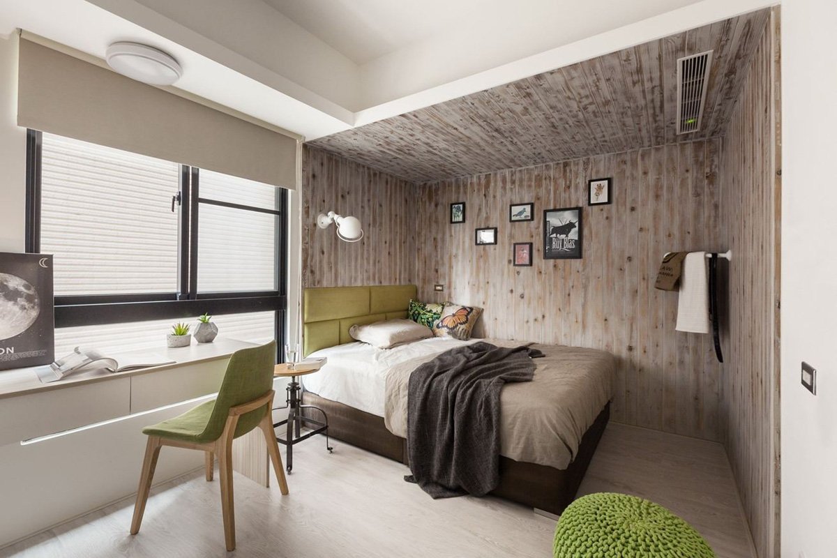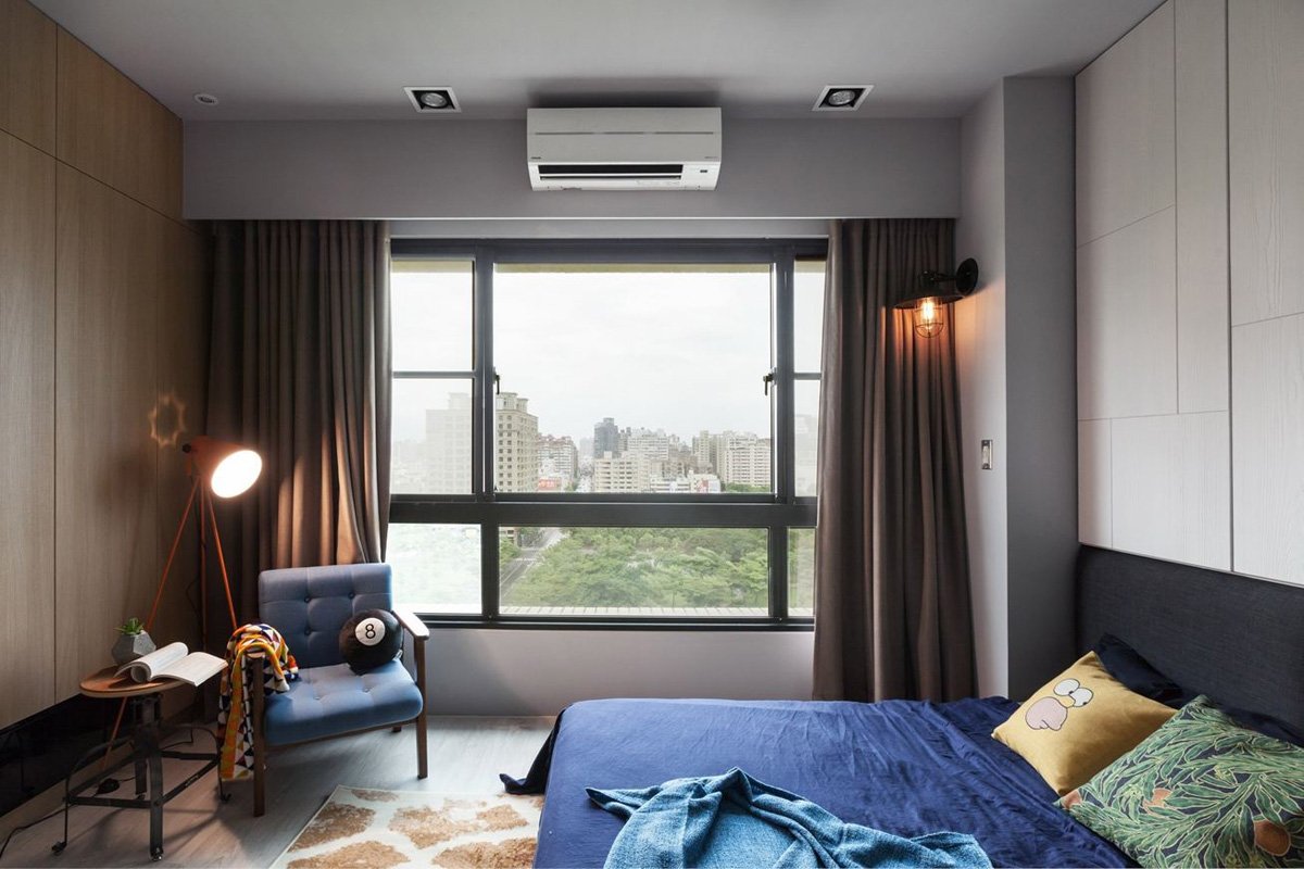 Called the Family Playground, this home was created by House Design ???? in Kaohsiung City, Taiwan. Mixing traditional and contemporary elements, the pairs restrained concrete walls and wooden floors with colorful details such as intricately patterned tiles and a forest green chalkboard wall. One element in particular, the pipe dividers, stand out for their blend of classical and industrial imagery and their dual Fung-shui and storage purposes.