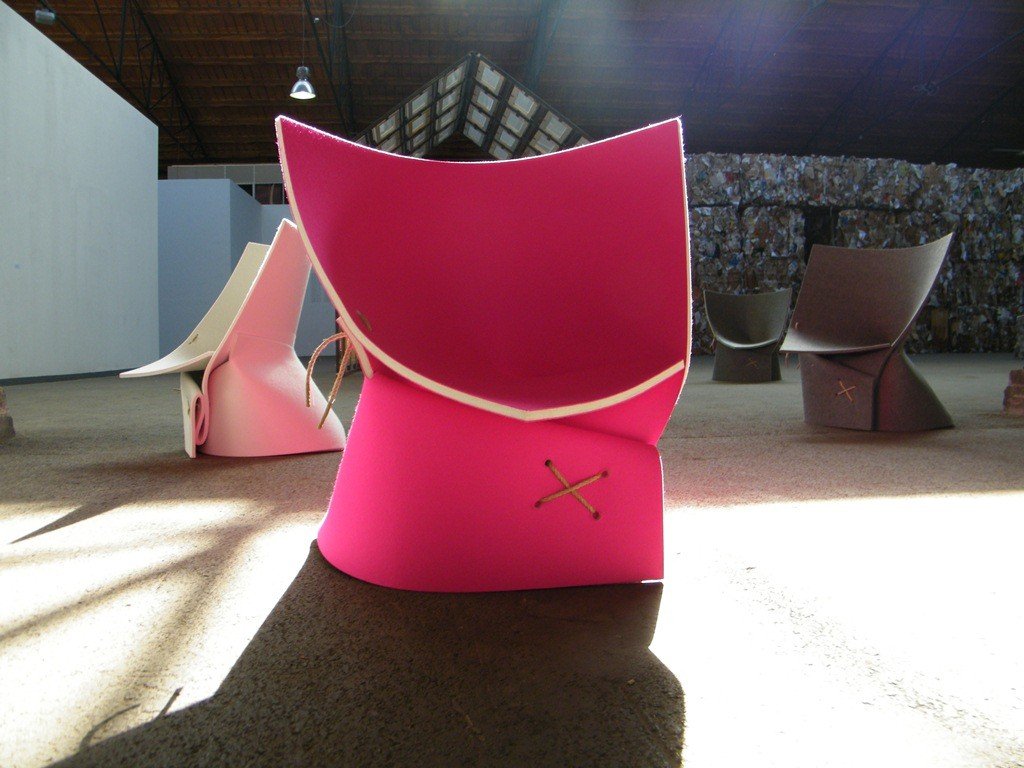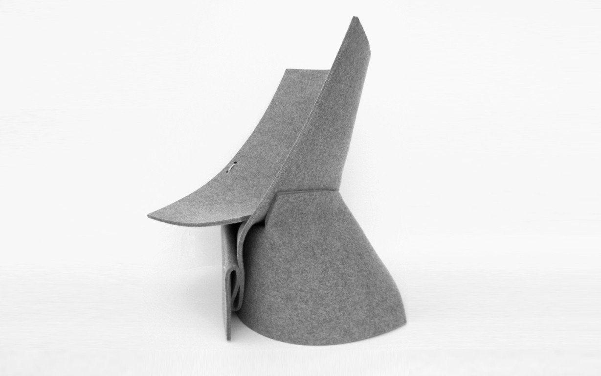 Fox and Freeze is a creative cooperation between 2 Belgian designers, James van Vossel and Tom De Vrieze. The first project of their freshly found design studio is the FF1  indoor lounge chair. Made out of 1 square sheet of synthetic felt, the FF1 it is completely self-supporting (no wood or metal or other the structure not so ever). Starting from a square piece of thick felt, after several folding and  twisting the FF1 comes to life. A series of flax rope stitching-like closures are applied to give it an extra aesthetic touch.  So is a single piece of twisted felt strong enough to be a chair?  Check this out!