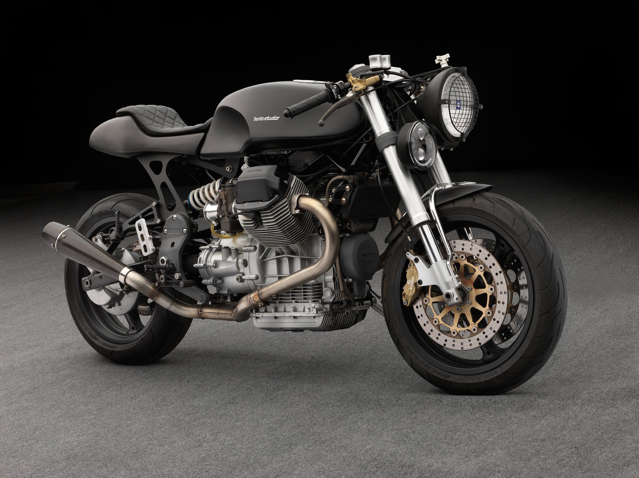 “The bike needs to start with a soul.” These words come from Moto Studio founder Bruce McQuiston and they explain the workshop’s exclusive use of two Italian brands, Ducati and Moto Guzzi, as a starting point for the customized designs, but also the aesthetic of the handmade bikes. This ‘Moto Studio’ look combines classic Italian design, creativity and craftsmanship, with upgrades added to enhance the performance of the motorcycle significantly.