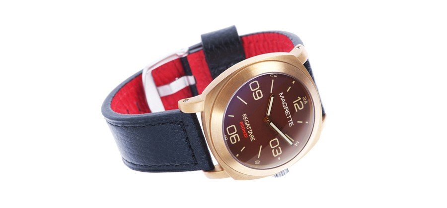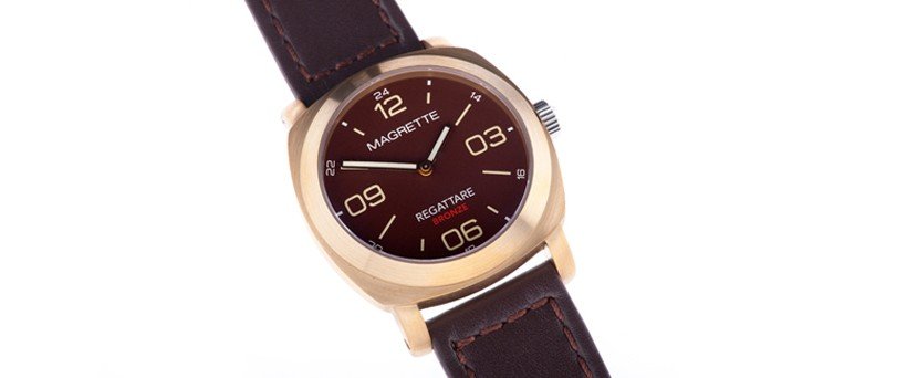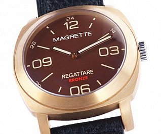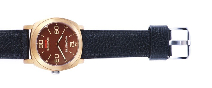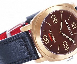 The Regattare Vintage Brass from Magrette Timepieces is one classy looking watch. It shines with high quality features like a 21 jewel Miyota automatic movement, a sapphire crystal and a leather strap. It’s an unmistakable treasure of time. But it took one mistake to make it such a wonder. It was originally supposed to be a watch made of CuSn8 bronze. Yet when Magrette did some testing, they found out that the supplier used brass, a metal that’s a mixture of copper and zinc instead of bronze, a metal mixed with copper and tin. They immediately took action by offering customers to exchange cases if they wanted bronze instead. But they didn’t seem to mind since bronze and brass look incredibly similar. However, the metals do change with time; brass becomes a more darker brownish color while bronze becomes a more reddish dark color. Sometimes a little mistake can result in the best of things. The Regattare Vintage Brass is a limited edition of 1,000 pieces and is set at a retail price of $385.