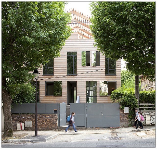 The front side of the "Sustainable Wood House" by Djuric Tardio located in Antony, France caught my attention at first sight as it features beautiful stainless steel mirror shutters... Read full article »