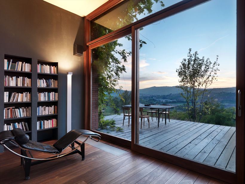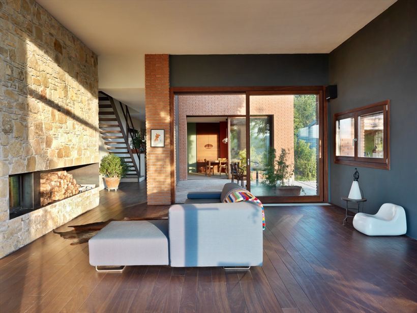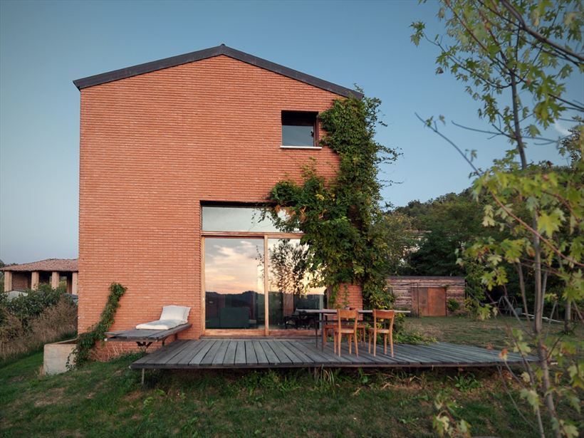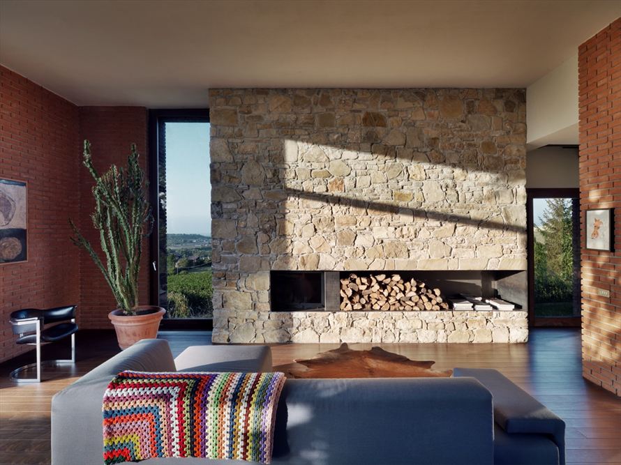 Located in the Val Tidone foothills of the Piacentine countryside of Italy lies a residence that lovingly interprets the traditional ‘cascina’ and barn type styles of the area. This contemporary home was built around a central covered courtyard which forms the core of the main floor living area. Park Associati designed the home to have a continuous relationship of comfort for residents throughout the year. The main floor includes a cloakroom, a storage area and two large rooms that are interconnected through large sliding doors. The kitchen and dining area almost work as one as they share a single space along with the living room. Four bedrooms and two bathrooms are situated on the first floor where the unique materials of iroko wood and local stone create an unusual and intriguing presence into the rooms.
