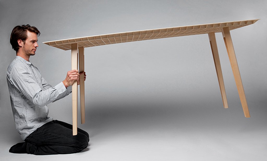 But is it practical? The Kleinergleich5 is a standout in its weight class, yet the concept of lightweight tables is possibly more fun than functional. A table such as this is easier to move than a regular model, but there are many situations in which one doesn’t want a table to move. A lightweight table might be fine pushed against a wall or stationed in a room that doesn’t see much activity, but it’s hardly suitable as a freestanding living room table, where a child, a dog, or someone who just hasn’t drunk their coffee yet is bound to bump into it and send whatever’s on top crashing to the floor. While handy if one lives in a building without an elevator, a lightweight table isn’t as versatile as a traditional, sturdier model, The informal competition to design the lightest wooden table should continue, but let’s keep the designs’ real-world applications in perspective.