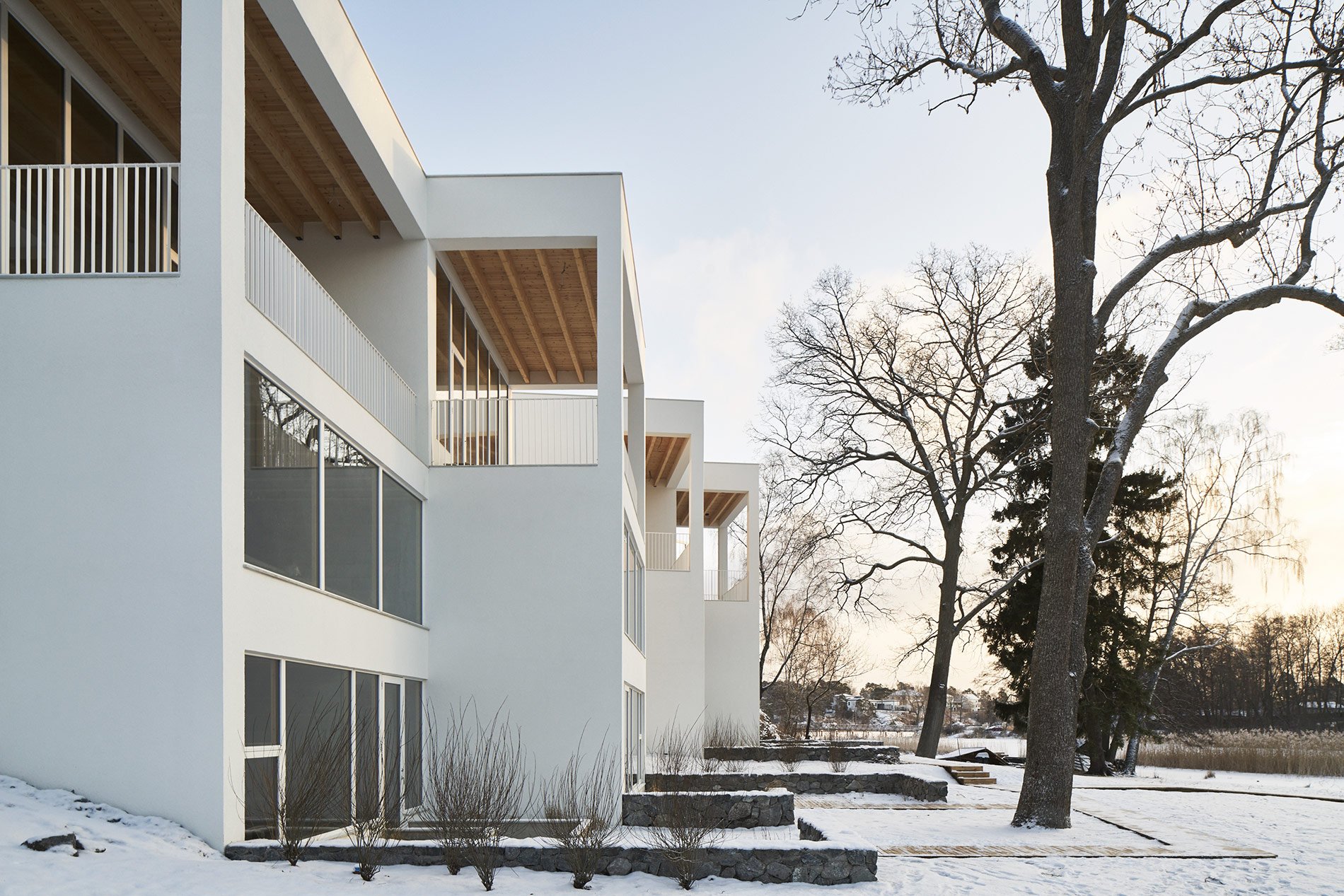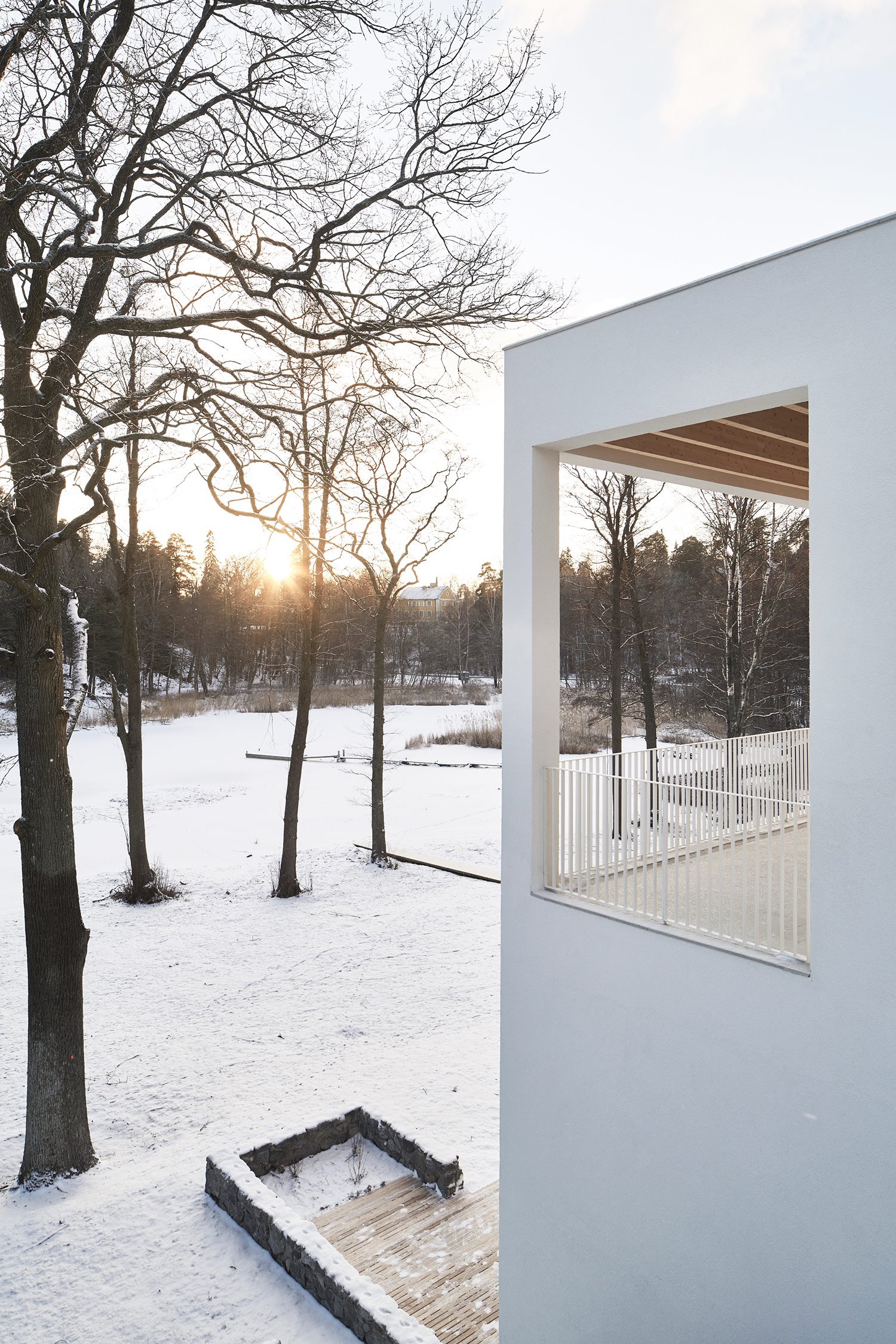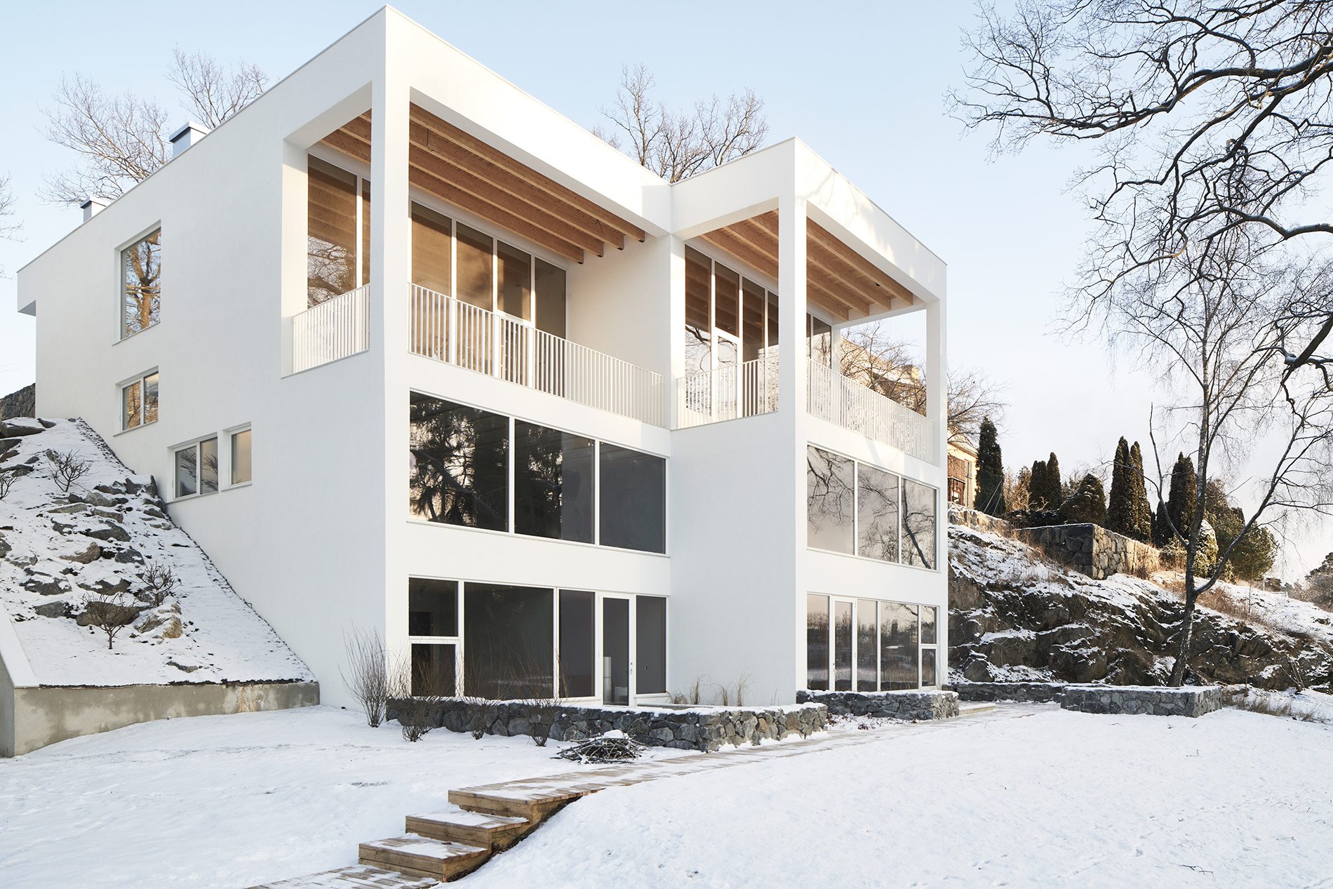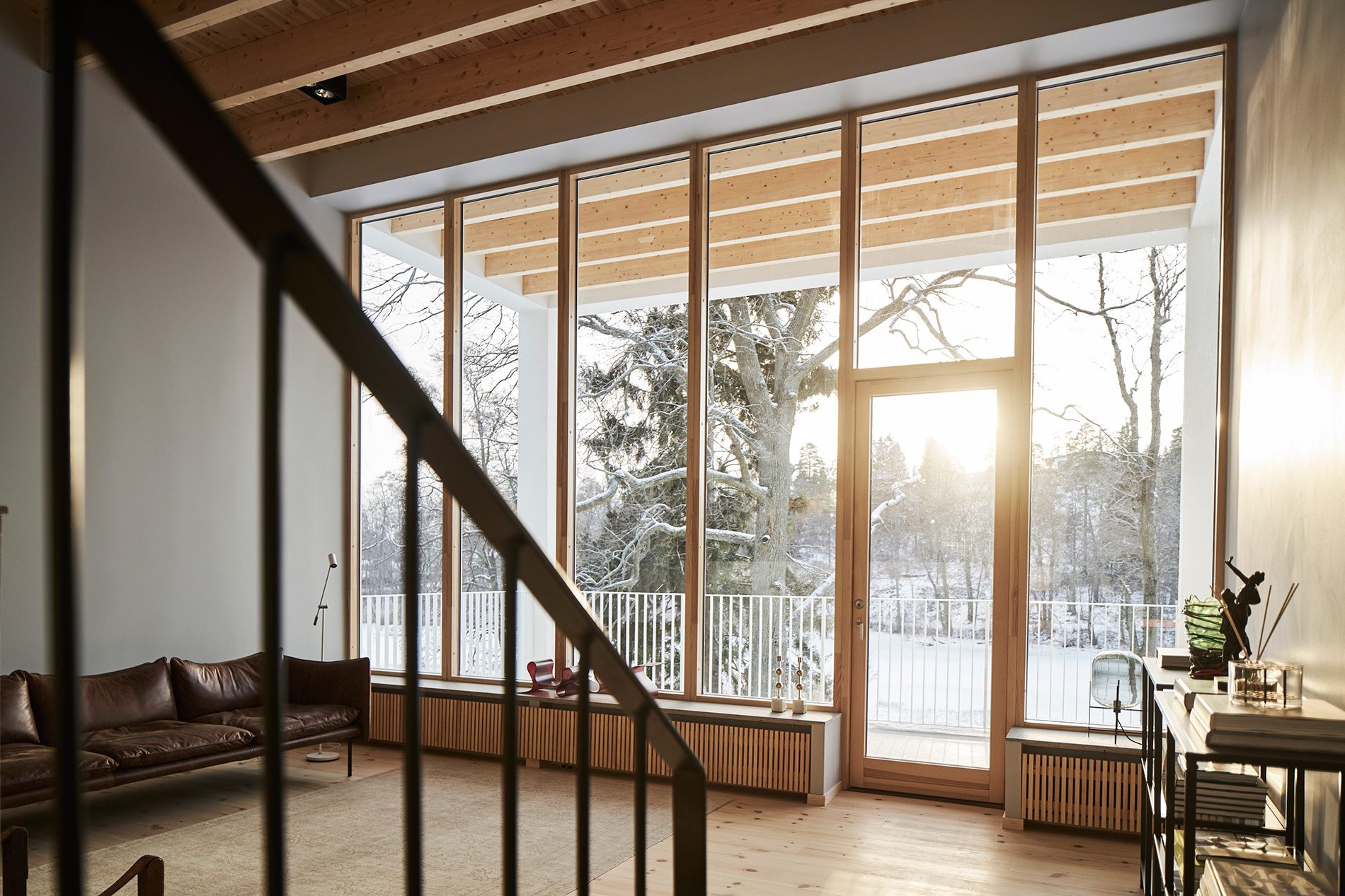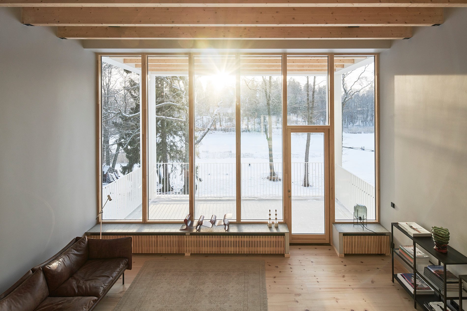 Sited in a quiet patch of Stockholm County, architect Max Holst’s newly completed townhouse in Saltsjöbaden is a beachfront property on the beautiful Baltic Sea. But while this may be nice during the summer, it’s when the notorious Scandinavian winter sets in that the house truly shines. Making the most of the limited sunlight the building receives in the winter, the townhouse is designed around what is essentially a large scale suntrap, utilizing a mainly glass façade to bring as much natural light into the home as possible. Thanks to an open and stunning interior design, this light penetrates almost the entire length of the house, warming the interior wood and making it a welcome retreat from the chilly outdoors.
