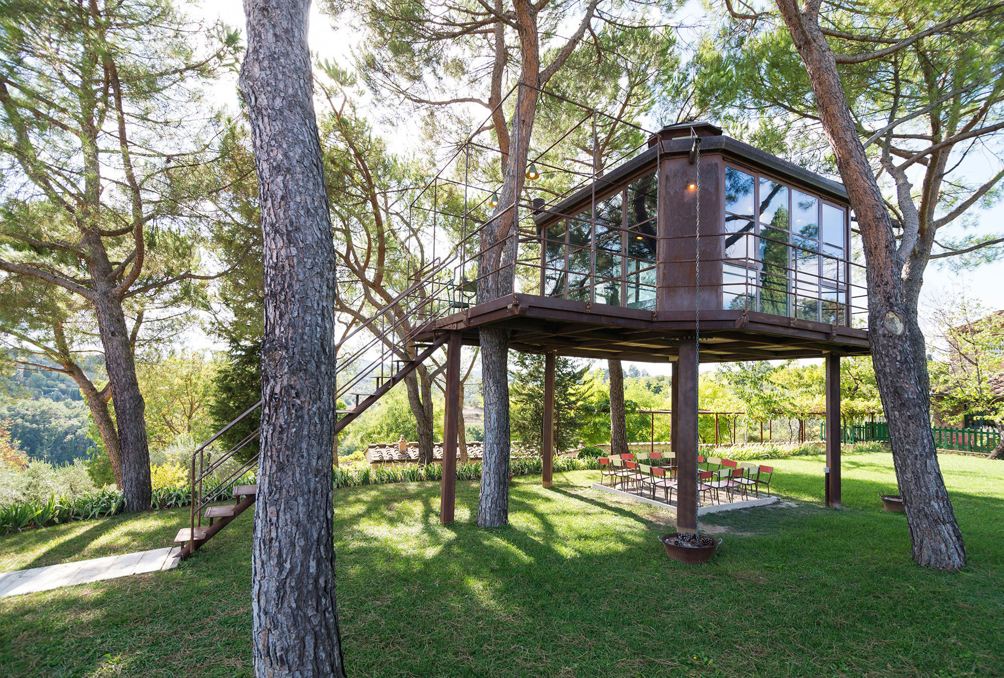 If you’re visiting Florence and plan on staying somewhere special, the Treehouse at Casa Barthel may be just perfect for you. Nestled among pine and olive trees, this cozy retreat has a creative vibe. Architect and artist Elena Barthel moved with her family to the farmhouse estate in the 1980s, when the property featured a stone villa and barn arranged around a courtyard. Over time, the estate expanded to include cottages and a tree house, becoming a welcoming space for artists and travelers. Elevated on columns, this retreat allows guests to feel a part of nature.