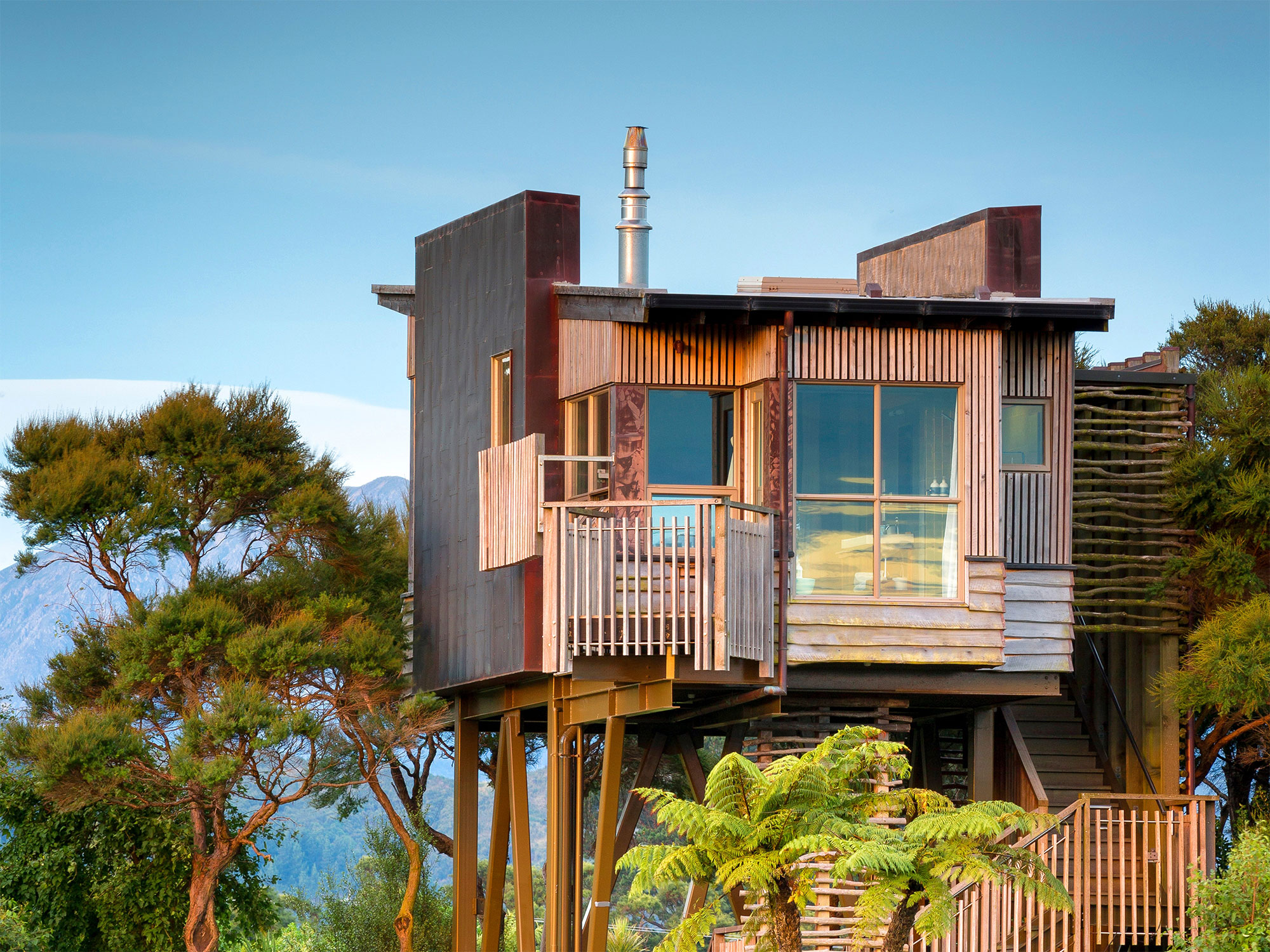 Modern but built with natural and local materials, the Hapuku Lodge + Tree Houses retreat is a must-visit place for anyone who wants to get inspired by the beauty of the New Zealand. Located on a deer breeding farm on the South Island, the tree houses sit at the base of the Kaikoura mountains in a native Kanuka grove. These tree houses for rent have a contemporary design and also feature local woods and copper shingles with modern interiors that combine bright colors and furniture made by local artisans. Guests can choose between the one-bedroom or the two-bedroom tree houses; all of them provide great views of the Kaikoura mountain range and the Pacific Ocean. A soaking tub, balcony, fireplace, and free WiFi are also included.