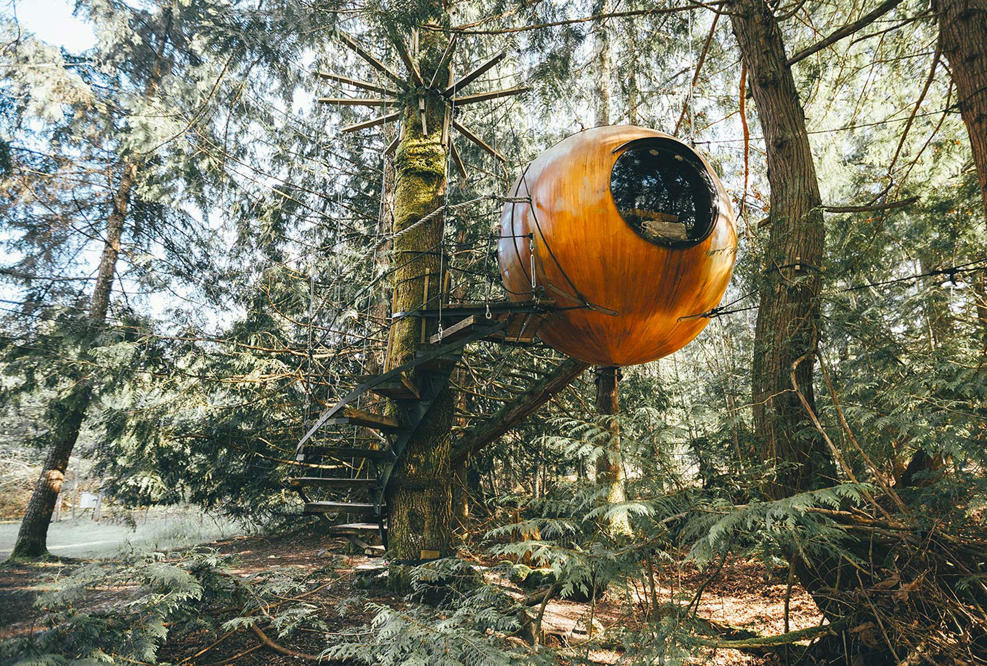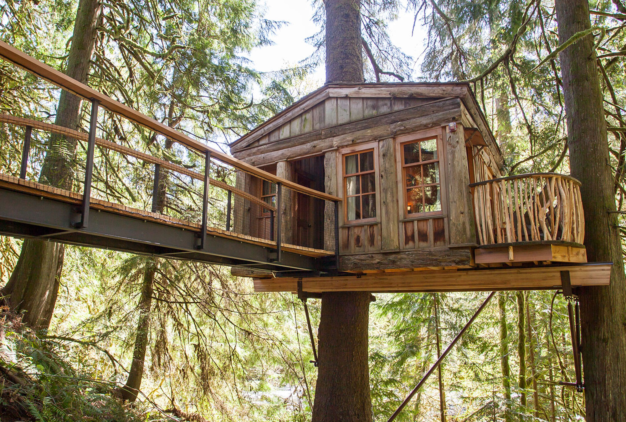 Designed and built by Pete Nelson, well-known American treehouse builder and host of Animal Planet’s Treehouse Masters TV show, TreeHouse Point is a must-visit place. Located in a beautiful forest setting in Snoqualmie Valley, only a 30-minute drive from Seattle, the six tree houses for rent allow guests to feel a part of the lush woodland. Each tree house has its own character and charm, but all of the cabins feature a warm interior design with classic accents and offer great views.
