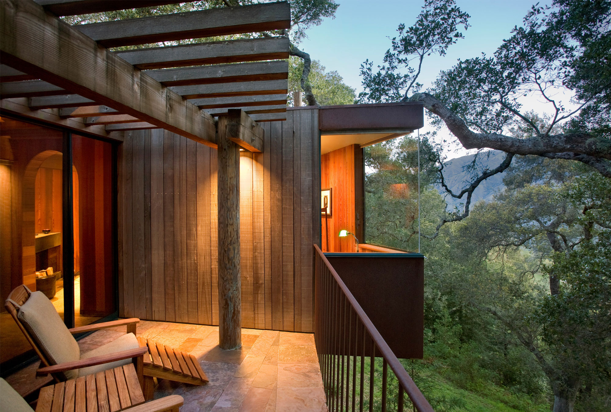 Ideal for a romantic retreat, Post Ranch Inn is a stylish resort located on the cliffs of Big Sur, California. Their tree houses for rent allow the same immersion in nature, but with an elegant twist. The cabins have a triangular shape and stand on 9 feet stilts. Inside, the spacious rooms feature a king size bed, a desk, a wood-burning fireplace, a walk-in shower, and a window seat as well as a skylight for stargazing. Guests receive a free breakfast with their reservation along with wireless Internet access.