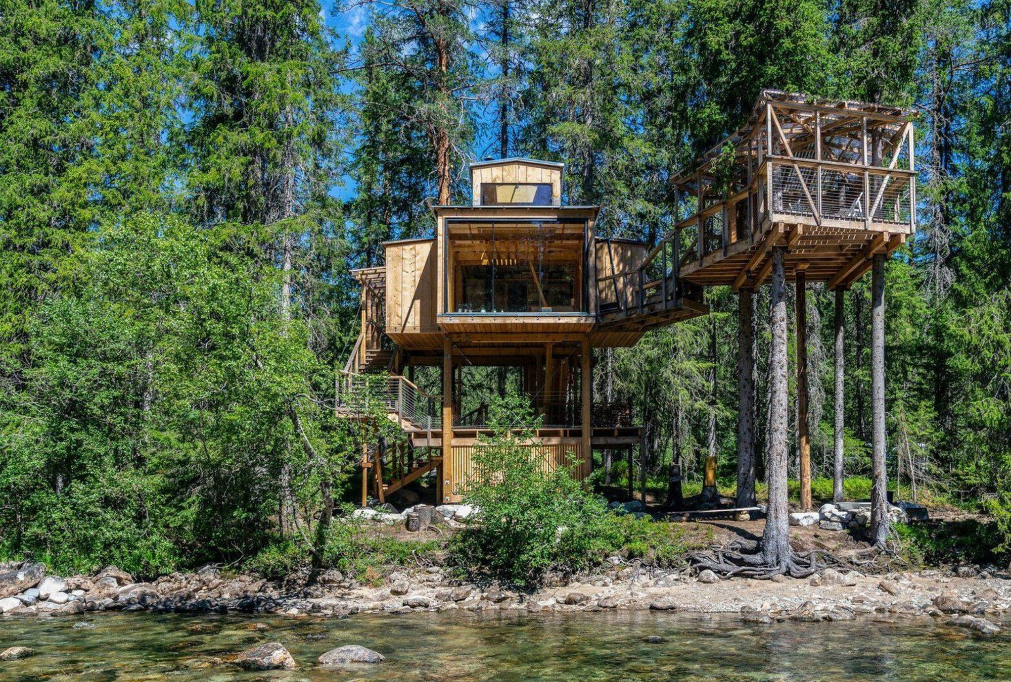 Under Canvas Glacier is a glamping site that offers comfortable accommodation close to the entrance of the picturesque Glacier National Park, Montana. While surrounded by wilderness, guests enjoy ultimate comfort in gorgeously designed deluxe, suite, and safari tents. The Under Canvas Glacier Treehouse provides the best views thanks to the elevated location. It has a loft-like design with a king size bed, a wood-burning stove, and a private bathroom with toilet and shower. It features a wooden flooring and furniture under a canvas canopy. The camp site offers access to picnic areas, grills, and a fire pit. Organic bath products, USB battery packs, boxed lunches, and s’mores are also available. When they’re not relaxing in their tree house, guests can enjoy one of Under Canvas Glacier’s complimentary activities or explore the spectacular setting.