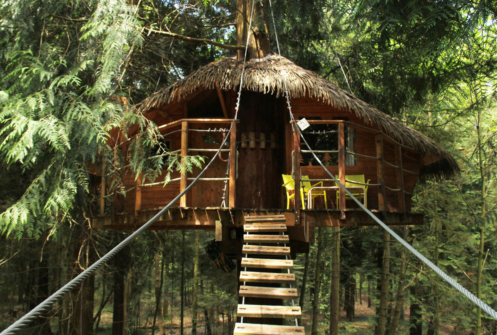 Located between Mont Saint-Michel and Saint-Malo in France, Les Ormes is a sprawling, 200-hectare retreat. Set on the grounds of a country estate that includes a château, this resort offers access to various types of accommodations, from a 3-star hotel to tents, wooden cottages, and cabins. Their Zip Wire Tree Houses offer an adventurous twist on the concept. Like their name suggests, these cabins nestled among tree tops are part of a larger course with cables, zip wires, rope bridges, and nets, to name a few. Guests receive training before reaching their hut. They also have to bring their own sleeping bag and charge their mobile phones beforehand. Put more simply, this is the perfect choice for those who are looking for a seriously fun tree house travel experience.