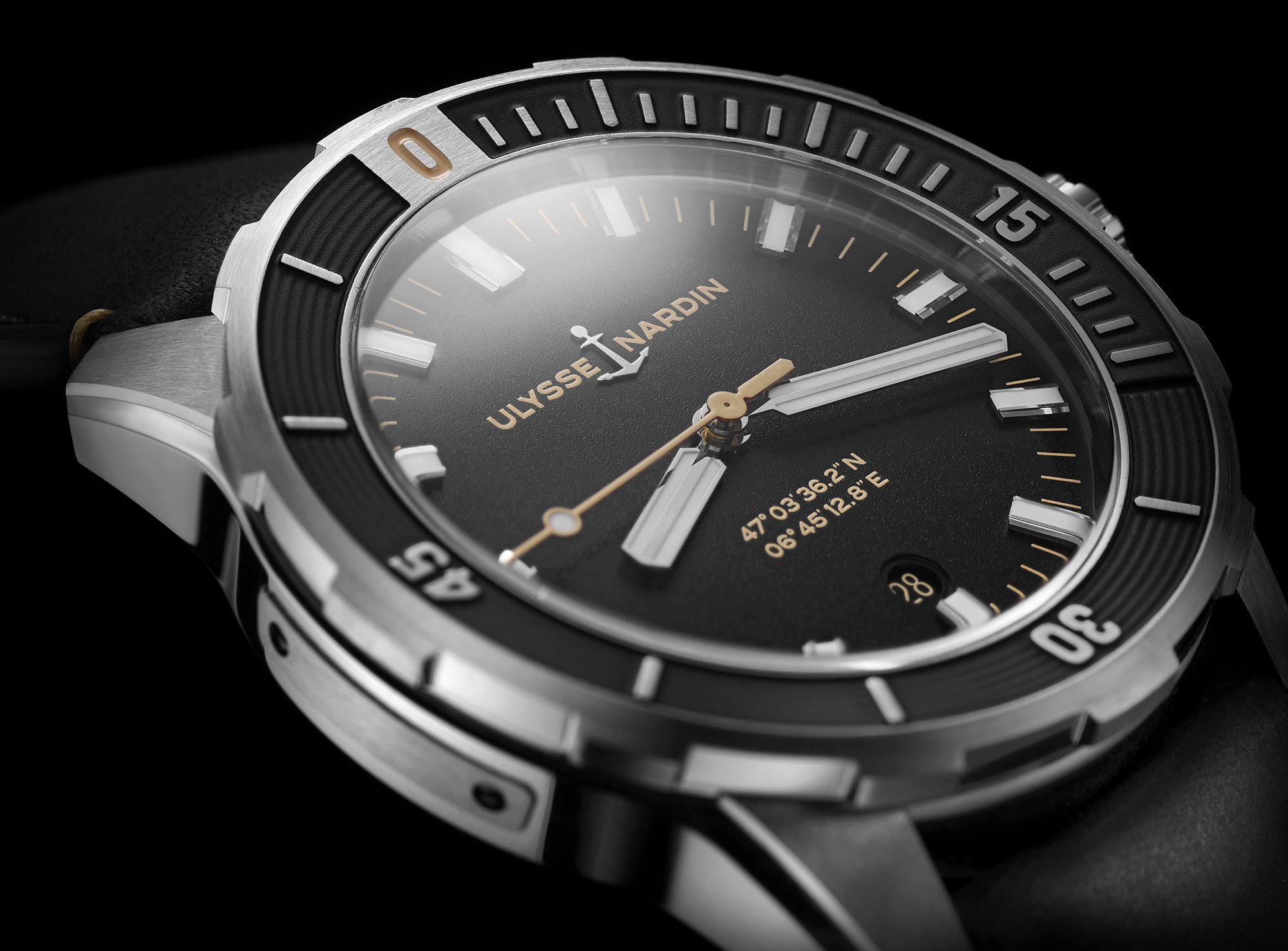 Based in Le Locle, Switzerland, leading watch manufacturer Ulysse Nardin has been making premium quality timepieces for more than 170 years. The brand’s latest dive watch reinforces the relaunch of the Ulysse Nardin Diver Chronometer Collection. At the same time, the design links two eras in the company’s history in an elegant way. The Diver Chronometer 42mm references Ulysse Nardin’s 1964 “Diver Le Locle” timepiece, but in a contemporary design. While the watch features the same concave bezel and domed sapphire glass of the new generation of dive watches, it also boasts vintage-inspired design cues. These include a clean dial, retro beige accents, and a seconds hand at the center. The GPS coordinates of the brand’s hometown of Le Locle also appear on the dial.