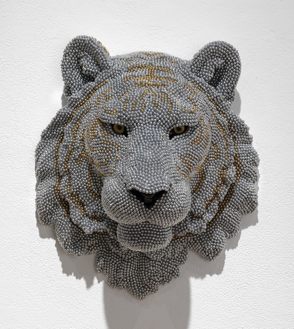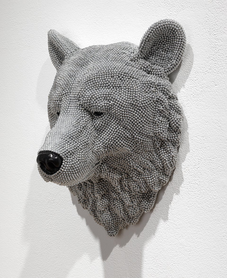 These taxidermy displays ironically have been shaped by thousands of air rifle BBS. Courtney Timmermans has taken on the meticulous task of recreating this unharmed animal version. Impressive antlers, tusks, beaks and eyes with realistic body sculpting present an Urban Herd in truest form.  Species range from royal maned lion to the traditional moose. Her work is showing at Chicago’s Jean Albano Gallery until August 24.