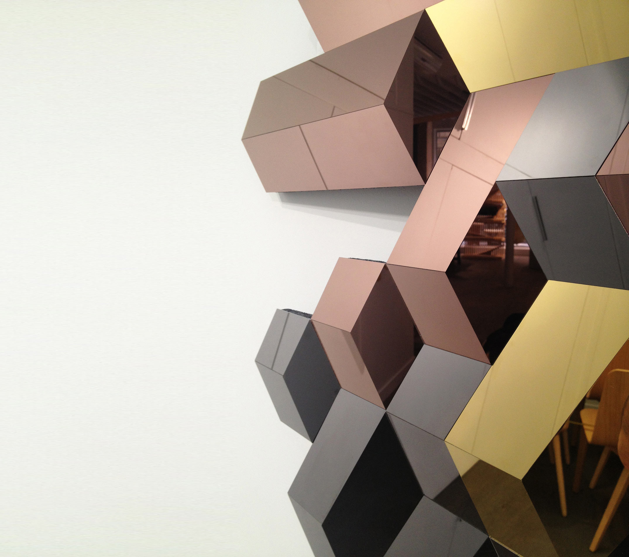 LUXX is a series of “neo-futuristic micro-architectures” by the French artist Samuel Accoceberry. Seemingly gilded in precious metals, the collection projects a utopian vision of the “City of Tomorrow.” In fact, the sculptures are made of steel that has been polished and treated with gold, copper, and dark bronze mirror finishes. The dynamic, 3D elements nod to the ideas and aesthetics of the Superstudio group, an arm of the Italian Radical Architecture movement of the 1960s. From March 26-29, the LUXX Collection will be shown by Galerie Waltman at the Grand Palais for ART PARIS 15.