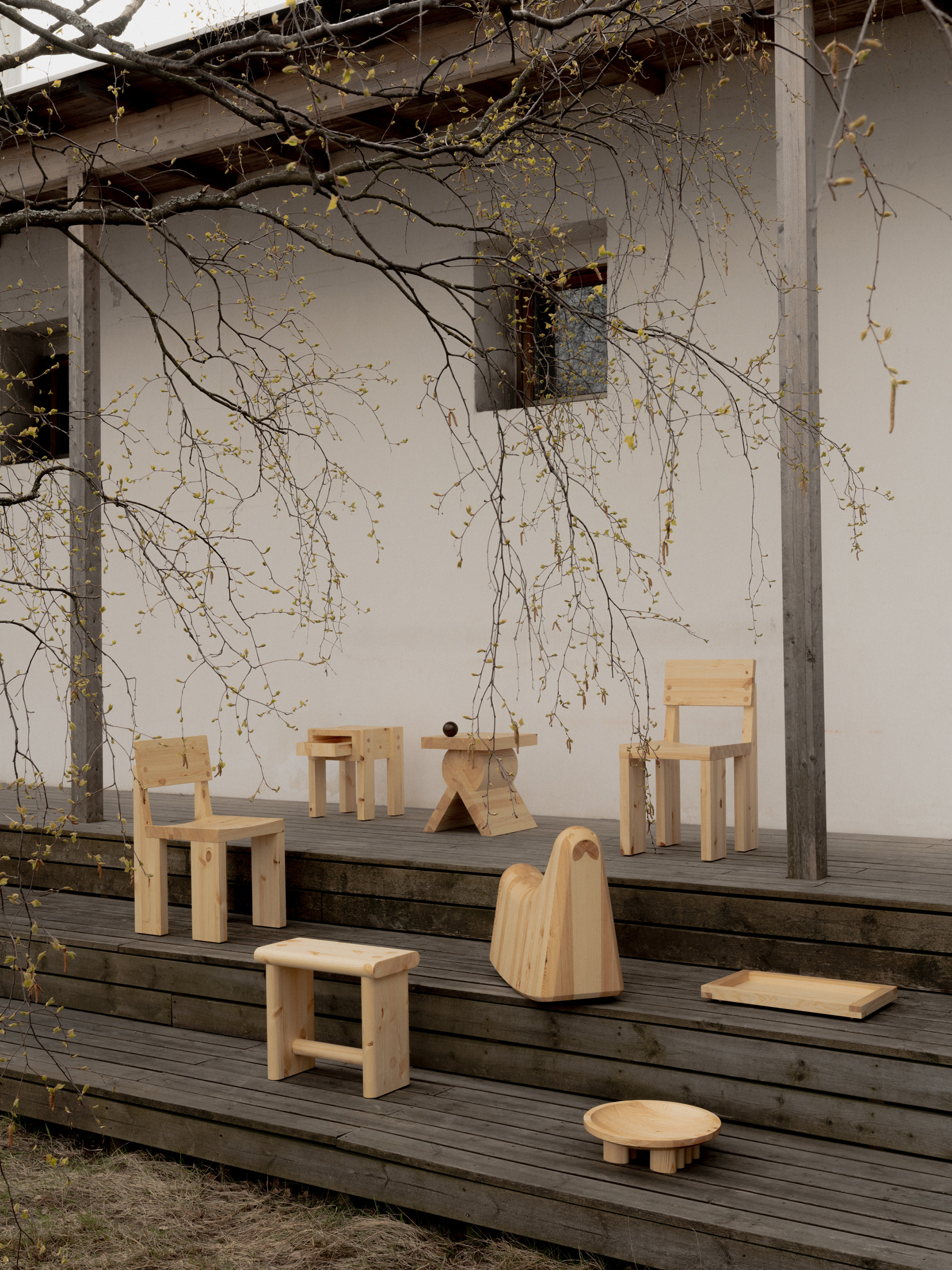 The brand used sustainably sourced, locally grown Scots pine wood to create its first collection, produced in collaboration with local craftspeople and factories. While it’s the most common type of tree in Finland, Scots pine had been underused there for generations. With the first Vaarnii collection, the brand puts the material in the best light, highlighting its innate qualities. Dense and heavy, Scots pine is also harder than other types of wood and has a bold character. All of these features make it a perfect choice for the company’s signature brutalism-inspired designs. To create them, the brand partnered with Finnish and international designers.