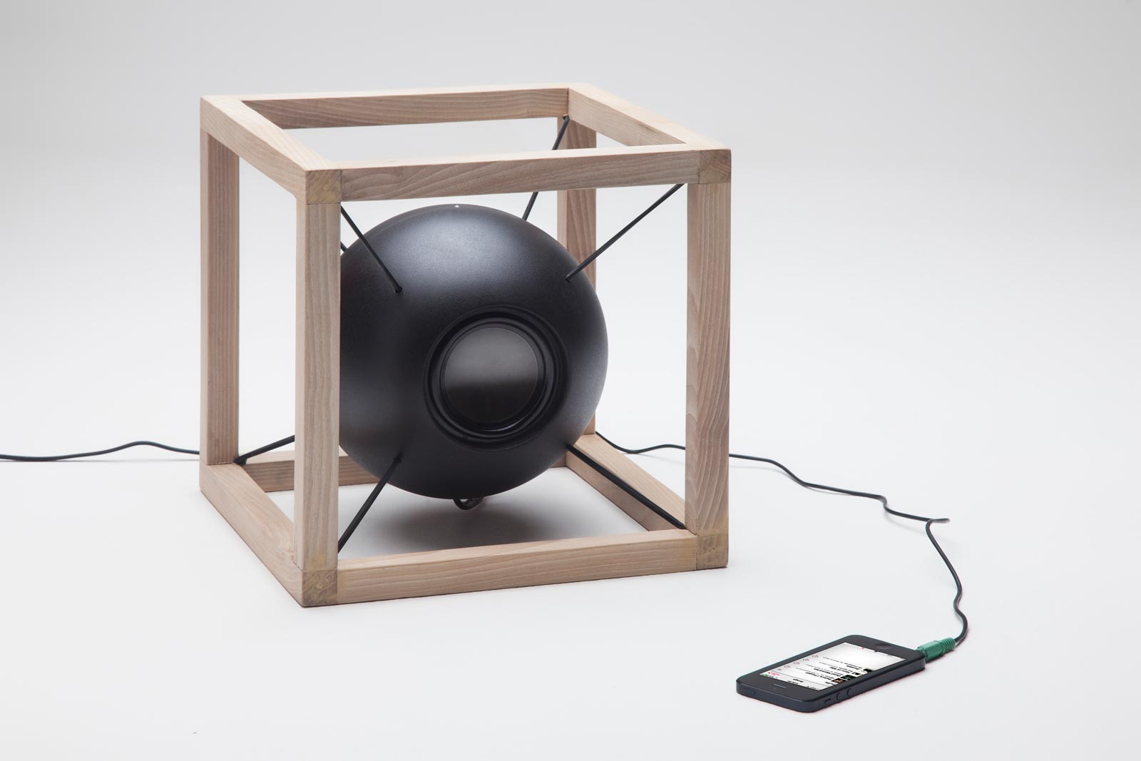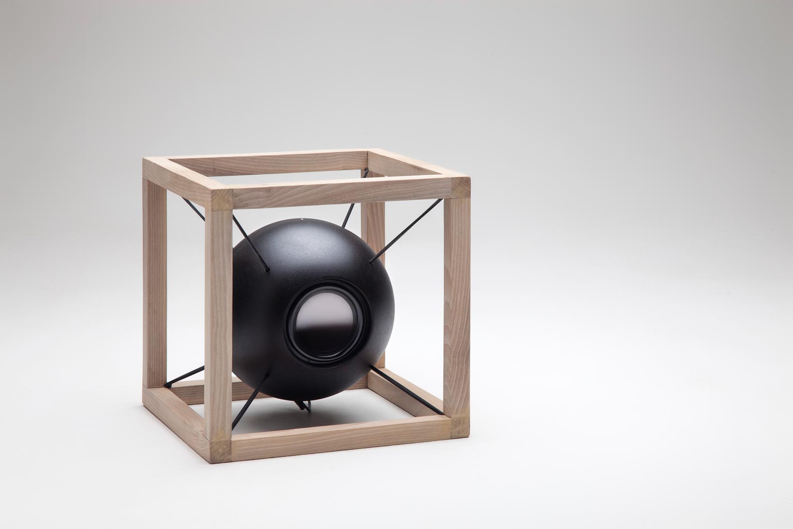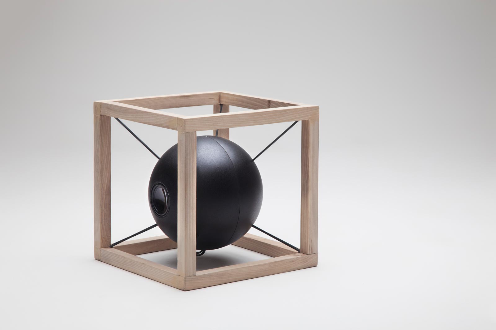 Designed by Juan Soriano Blanco and Giorgio Bonaguro, the Vitruvio speakers exhibit simple geometry evocative of Leonardo Da Vinci’s drawings of The Vitruvian Man. In each of the three versions, the round speaker is suspended inside a box of either wood or metal. The suspension allows the speaker to move with the vibrations of music, visualizing sound. The expressive designs can be made in square or rectangular shapes fashioned from naturally finished wood or black metal.