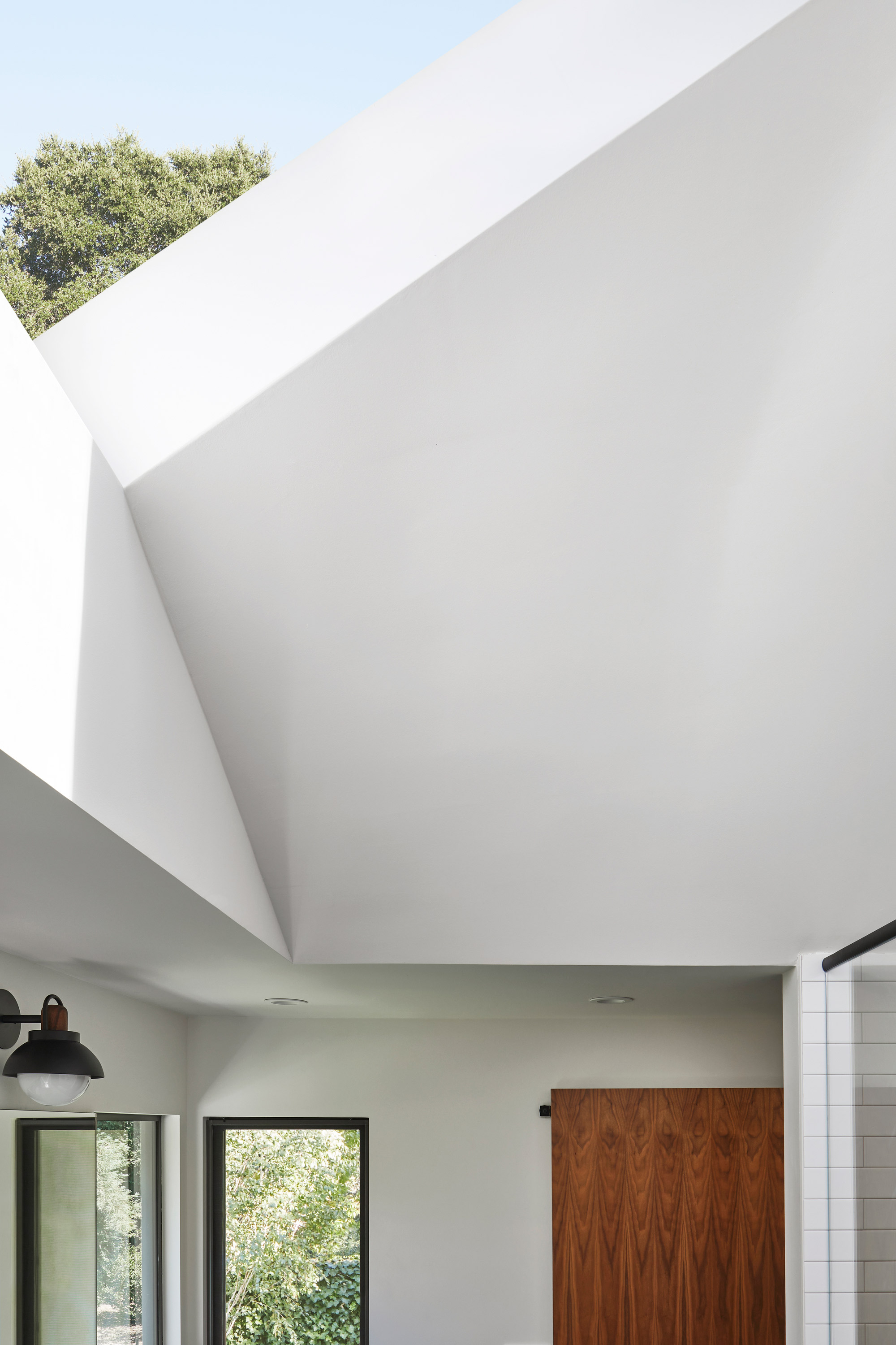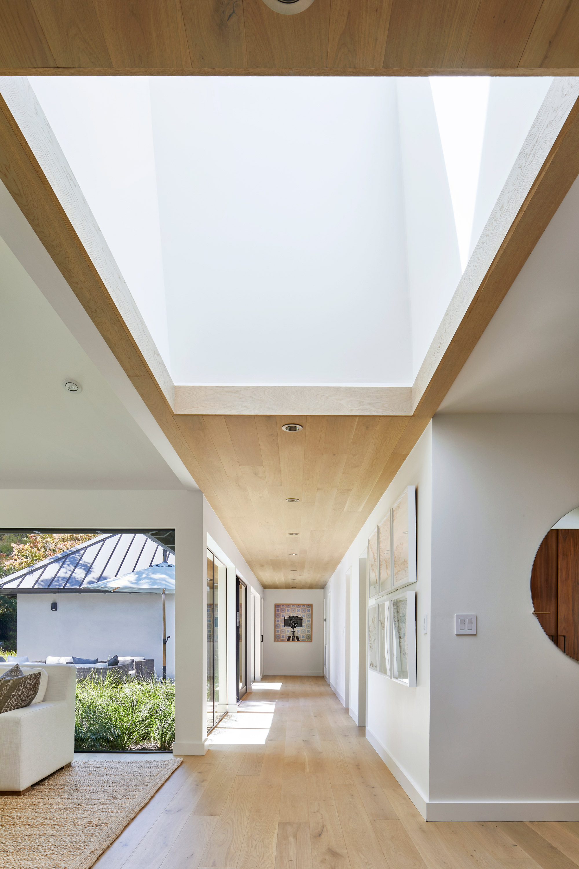 Located at the end of a quiet cul-de-sac in Atherton San Mateo County, California, this house is surrounded by mature oaks and grass. The design, although beautiful and representative of an era before the city underwent rapid growth, required drastic changes. Architecture and landscape architecture firm SAW (Spiegel Aihara Workshop) completely transformed the building to optimize the available space, natural light, and connection to nature. While previously marred by a large roof and unused, inefficient spaces in the attic, the residence now features a completely redesigned interior. The architects preserved the foundation and structure of the building, along with the materials.