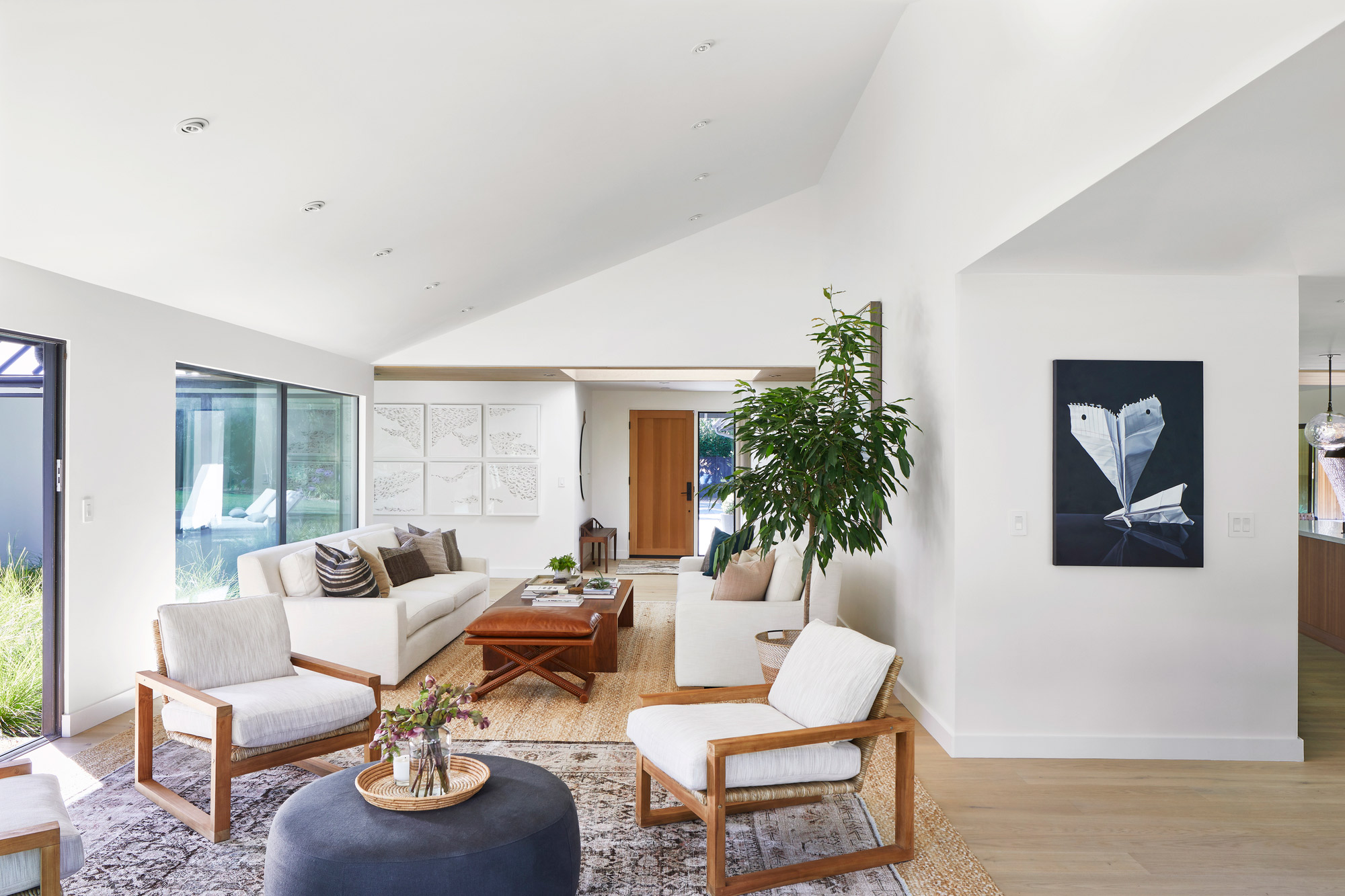 The architects used a simple material palette for the interiors; white walls and ceilings complement flooring and furniture made of solid wood. Expansive glazing creates a close relationship between the indoor and outdoor areas. The studio also completed the landscape architecture, reducing the footprint of the house to expand the garden. Organized around a courtyard, the living spaces open to nature through large windows and glass doors. The team preserved the mature oak groves and introduced drought-tolerant plants throughout the outdoor spaces. In time, the vegetation will grow and further reinforce the connection between the interior and nature. Photography © Mikiko Kikuyama.