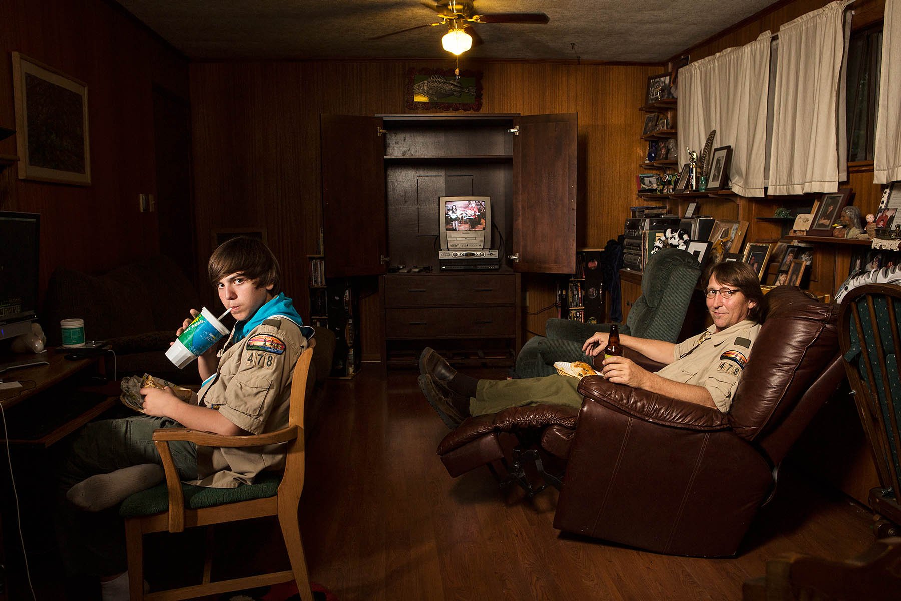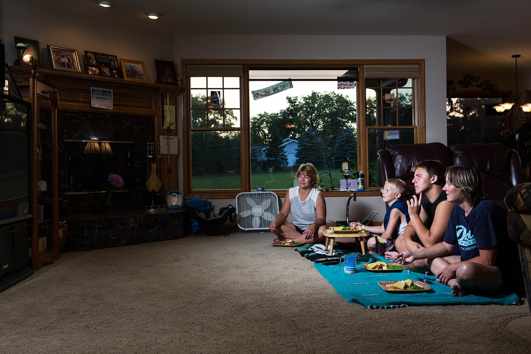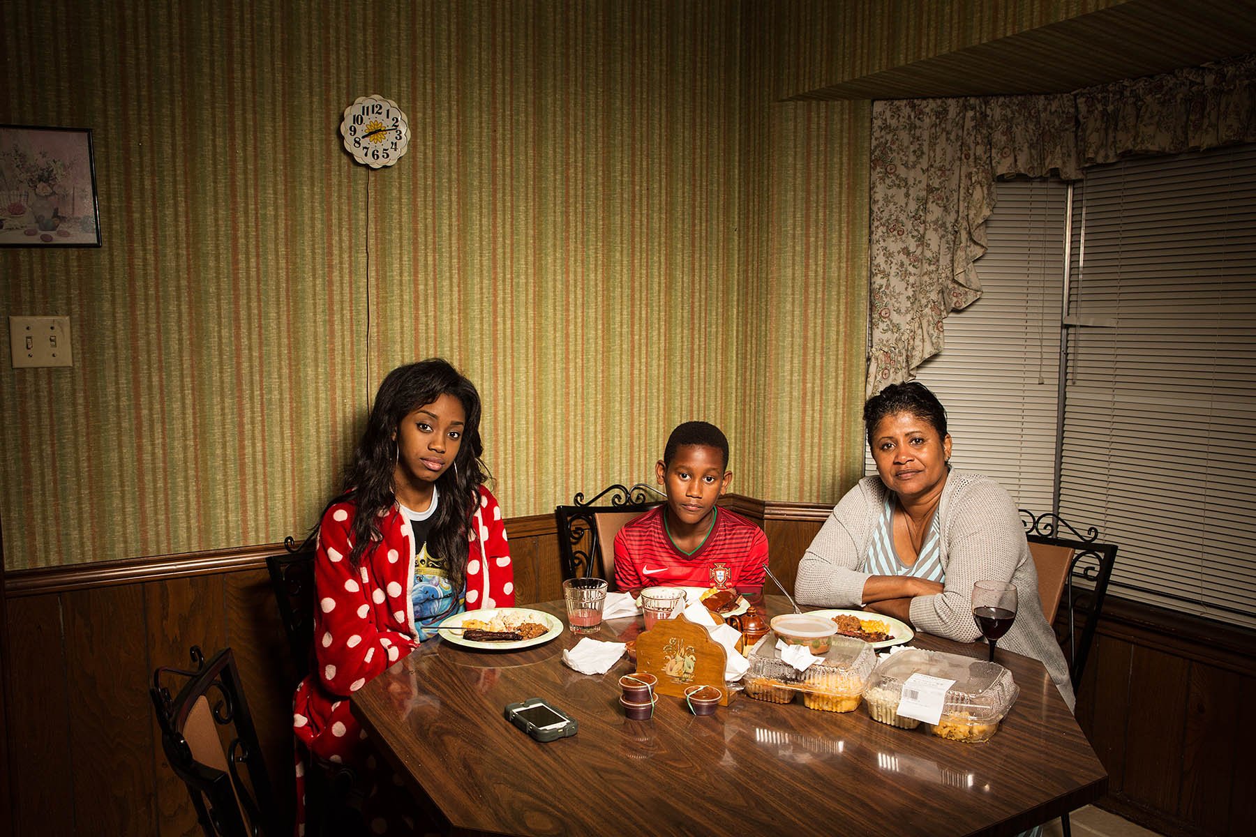Fascinated by people and the way their personal spaces reveal aspects of themselves, photographer Lois Bielefeld captures universal human qualities while displaying a spectrum of individualistic details. In Weeknight Dinners as well as in her previous The Bedroom series, the camera closes in, entering private living spaces. Beautifully composed, Bielefeld’s captivating photographs look like complex paintings where every object has a story to tell. The settings become pieces of a larger puzzle that provide clues to each individual’s personality. But the focus always remains on the faces of the main character(s); that’s what ultimately makes the images so powerful.