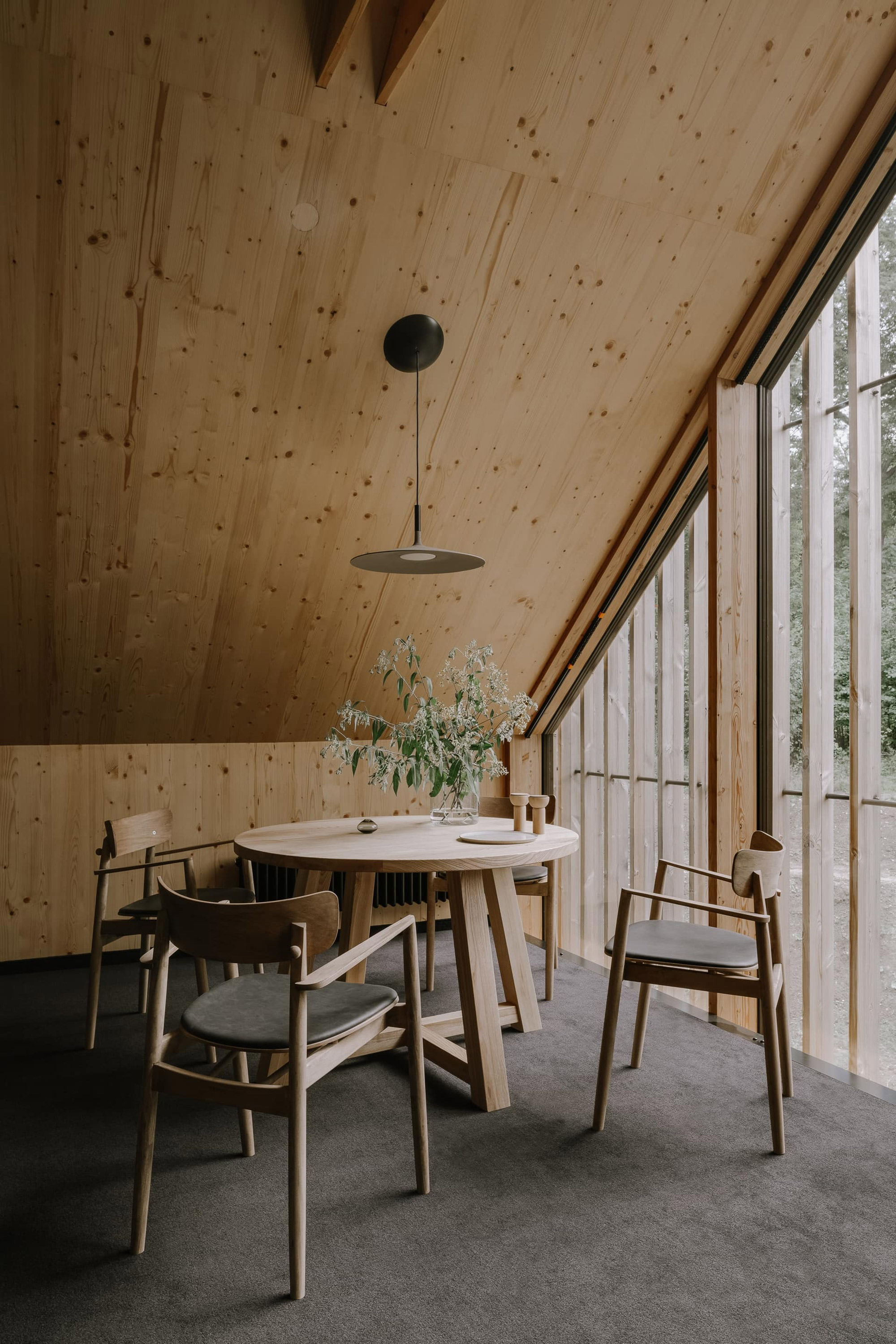The twin buildings contain several self-contained apartments, each with a kitchenette. Dining spaces and lounge areas complete the layout, with the quadruple rooms also boasting a separate bedroom and a sofa bed. The studio designed the interiors with light timber furniture, pale neutral walls, and darker surfaces that create a cozy atmosphere. Some bedrooms feature floor-to-ceiling windows and glass doors that open the rooms to terraces. Guests who want to book an apartment can choose lower floors that have a direct relationship with the surroundings, or upper suites that offer views of Karpacz and the Śniezka peak. Finally, there’s no traditional reception here. Guests receive their entry code online, with their booking. Photography © Oni Stories.