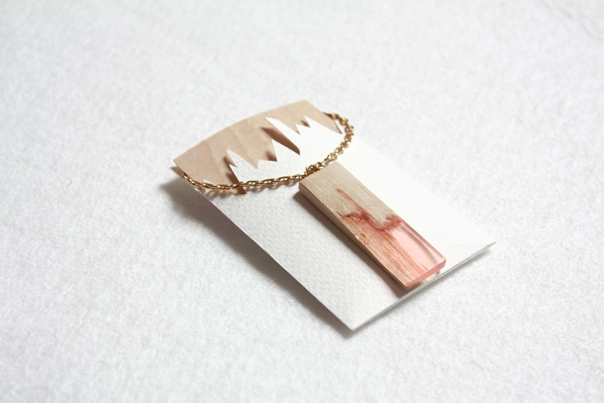 “Schmuckelemente,” or “Decorative Elements,” is a collection of wood and resin jewelry by German designer Marcel Dunger. Salvaging chips of maple, the design “mends” these broken pieces by encasing the rough edges in bioresin. The resulting pendants contrast rough texture and neutral tones with seamless drops of bright color.