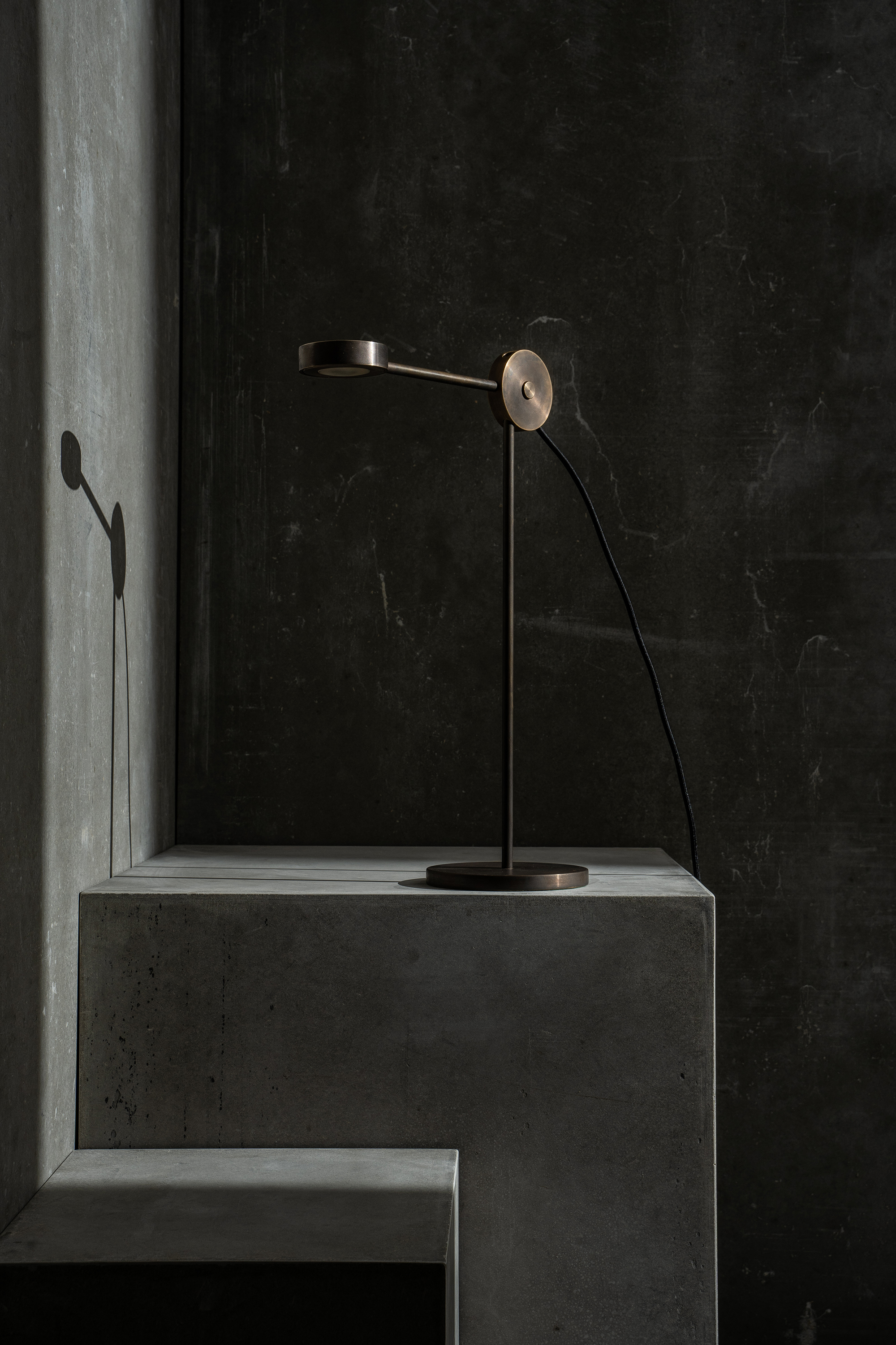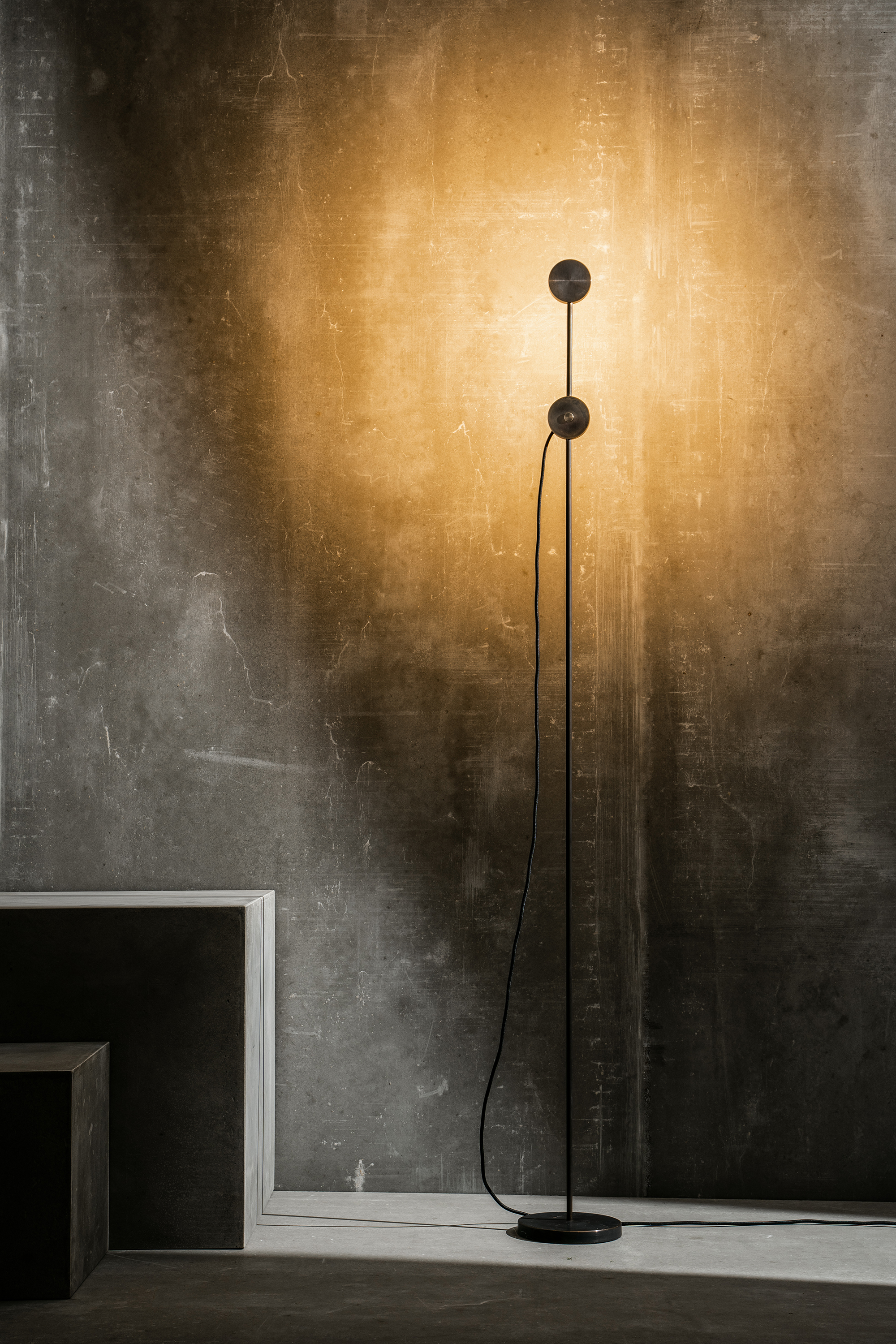 A minimalist, task floor lamp from brass, WUL is inspired by the flexibility of a torch.